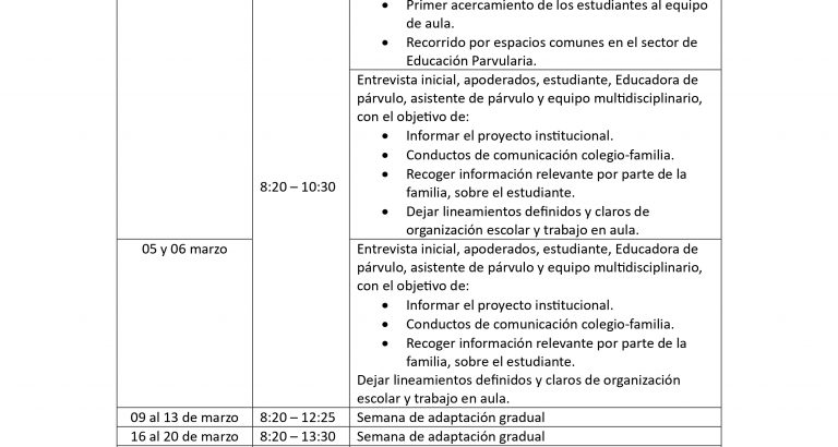 Documento PERIODO DE ADAPTACIÓN NIVEL PARVULARIO 2026