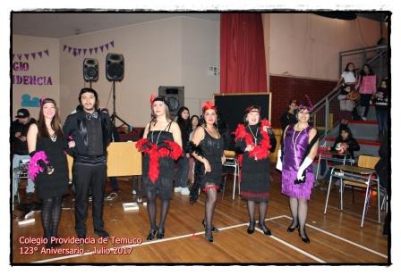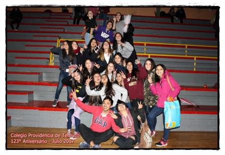 En un ambiente de alegría, entusiasmo y respeto se celebró el 123° aniversario del Colegio Providencia de Temuco, instancia de convivencia en la cual las estudiantes, profesores, asistentes de la educación y apoderados participaron en múltiples actividades artísticas y de competencia que dio como ganadora a la alianza nickelodeon compuesta por II° medio A – II° medio B – 7° básico – 3° básico y kínder. Felicitamos a todas nuestras estudiantes por la actitud demostrada ante la comunidad educativa que permiten reflejar los valores que nos heredó nuestra fundadora Madre Bernarda Morín. Las instamos a seguir trabajando de forma unida, responsable y respetuosa con todos los que nos rodean.