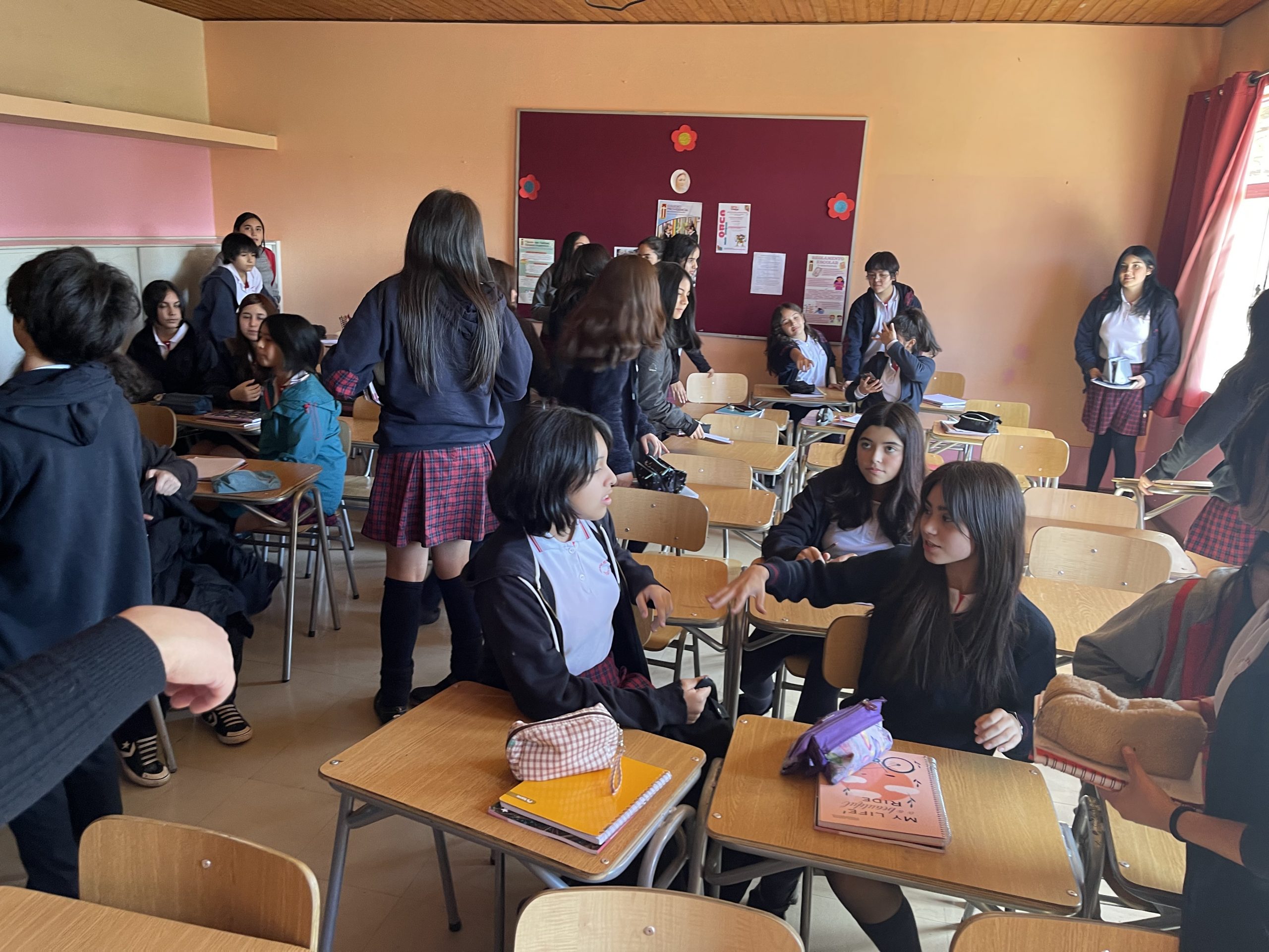 Durante la jornada, las participantes visitaron diversos cursos, compartiendo su entusiasmo y conocimientos con sus compañeras de otros niveles. En particular, se destacó la interacción con el curso 6° A, guiado por las profesoras Patricia Gajardo y Teresa Guzmán, el curso 8° A bajo la tutela de la profesora Verónica Ruiz, y el curso II° A dirigido por la profesora Valentina Villegas.