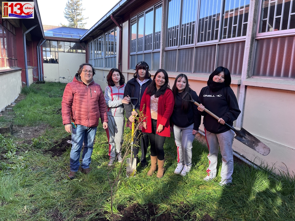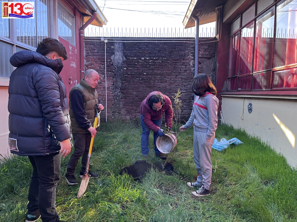 El día jueves 29 de agosto el apoderado Cesar Illanes, representante del centro de padres y comité ambiental, junto a profesoras, auxiliares y estudiantes pertenecientes a la brigada ecológica, plantaron en el patio del establecimiento Notro (Embothrium coccineum) un árbol endémico de los bosques templados australes de Sudamérica y Chequen (Luma chequen) una especie de planta con flor endémica de los bosques centrales andinos entre Chile y Argentina.