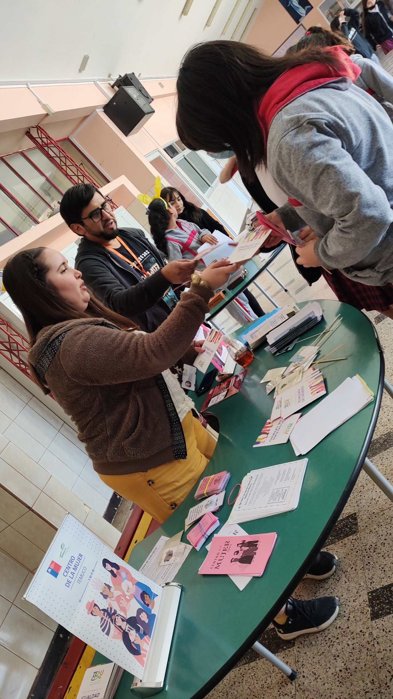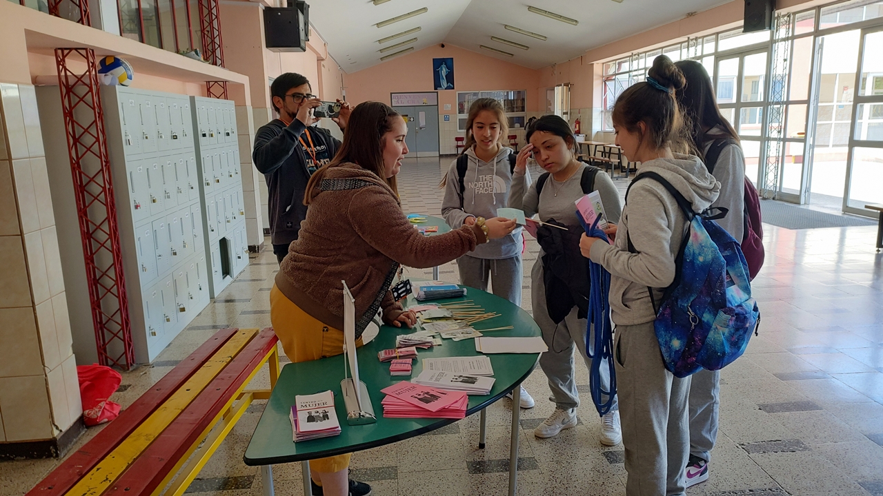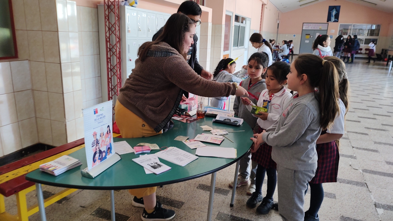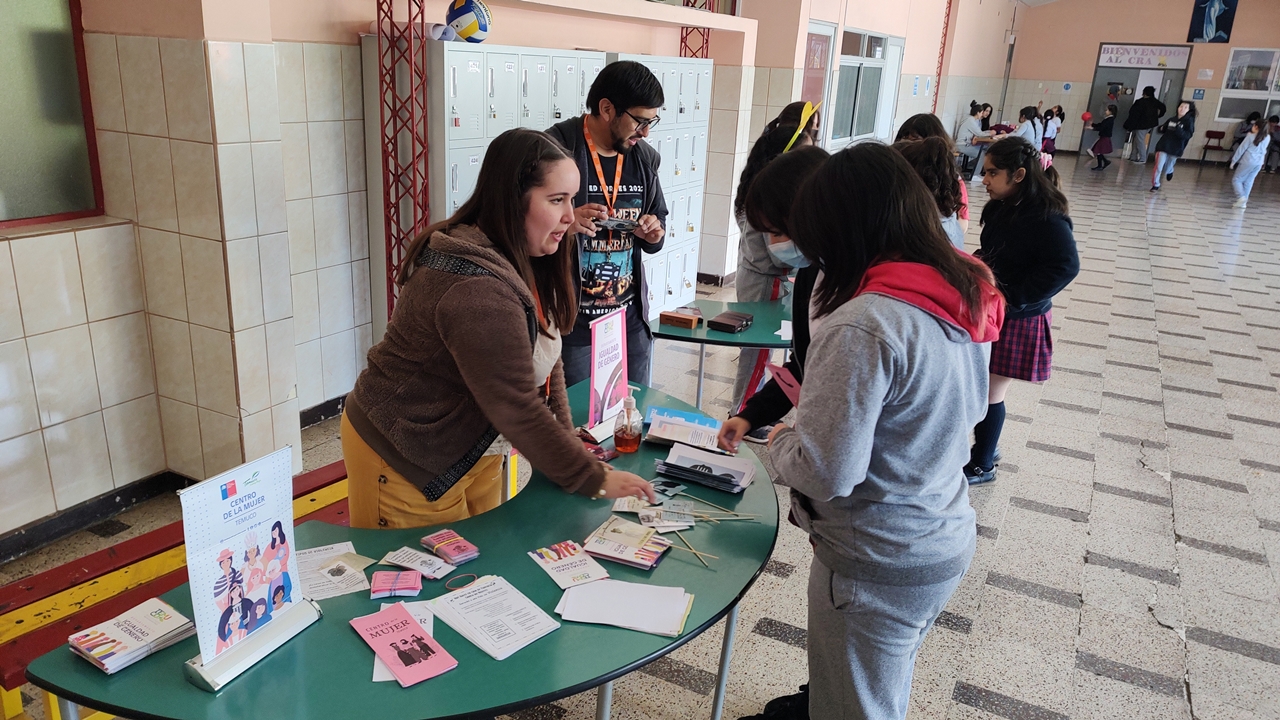 Dentro de las actividades de Convivencia escolar y como dupla psicosocial se invita al Centro de la Mujer y equidad de Género a entregar información sobre la eliminación de la violencia contra la mujer y violencia en el pololeo. Está difusión se desarrolla dentro del recreo interactivo preparado para las alumnas del colegio.