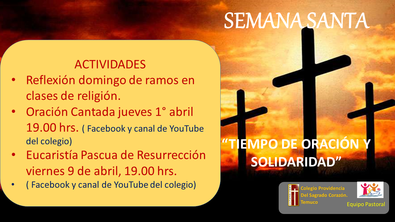 Durante esta semana Santa les invitamos a hacer oración por los que están solos, por los enfermos, por los sin trabajo, junto con ofrecer al Señor. un gesto concreto de ayuda al prójimo como muestra de agradecimiento a su infinito amor por cada uno de nosotros.