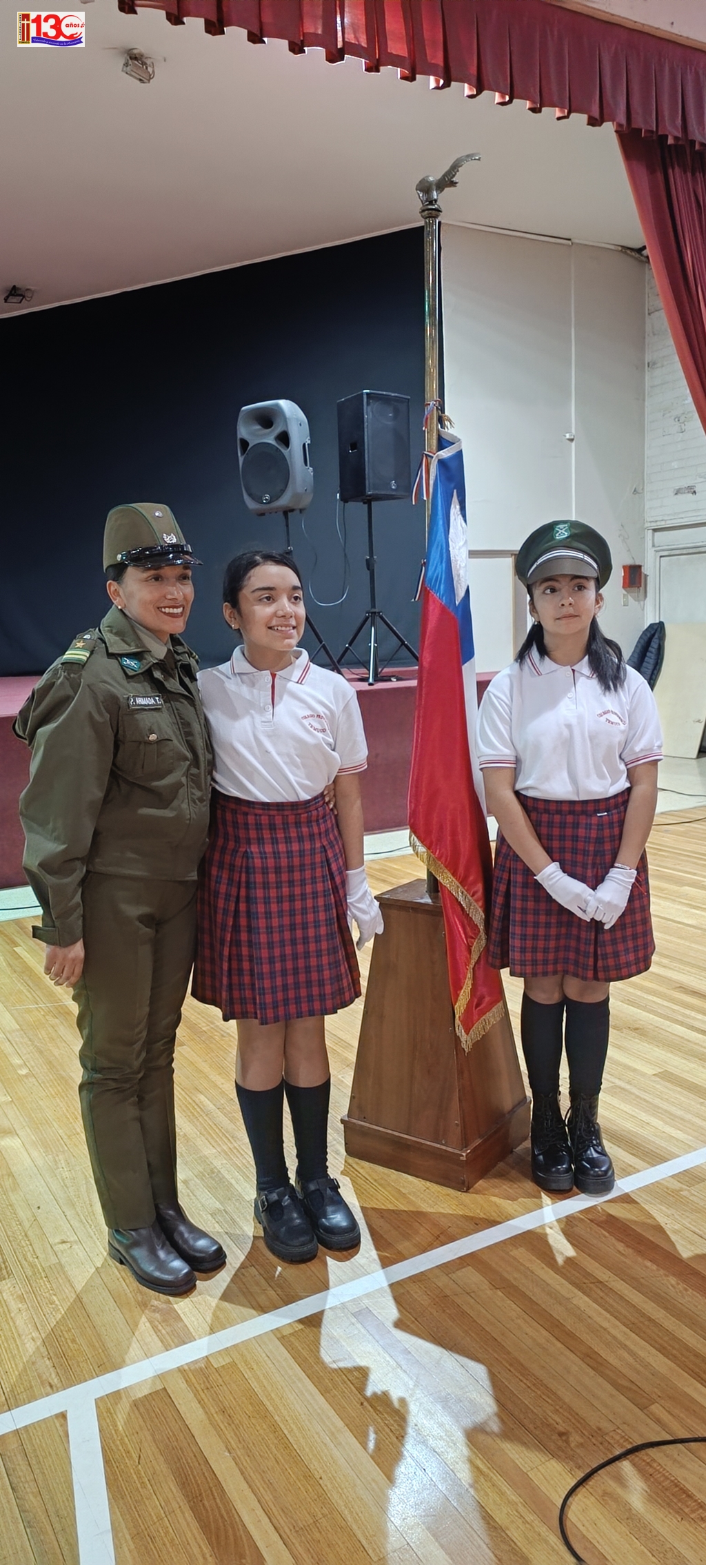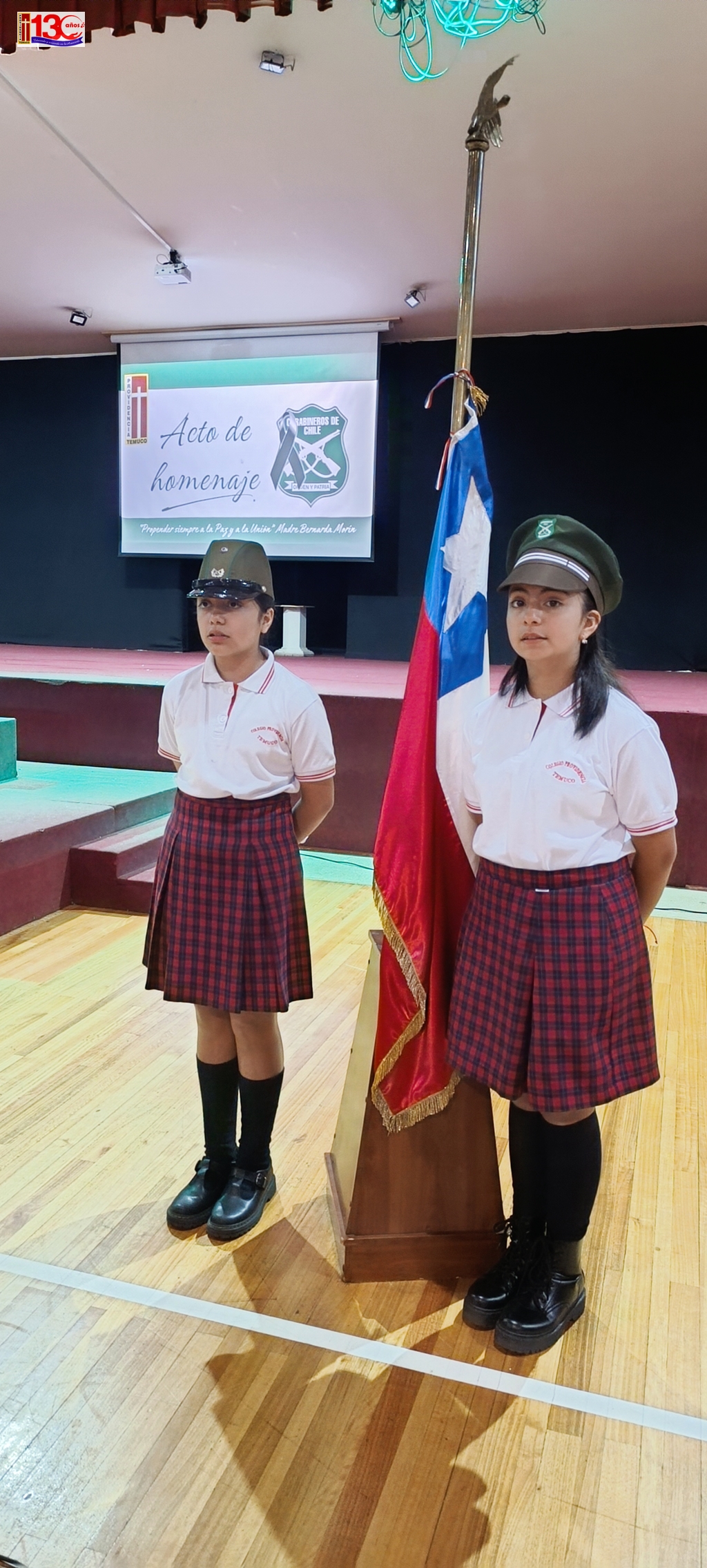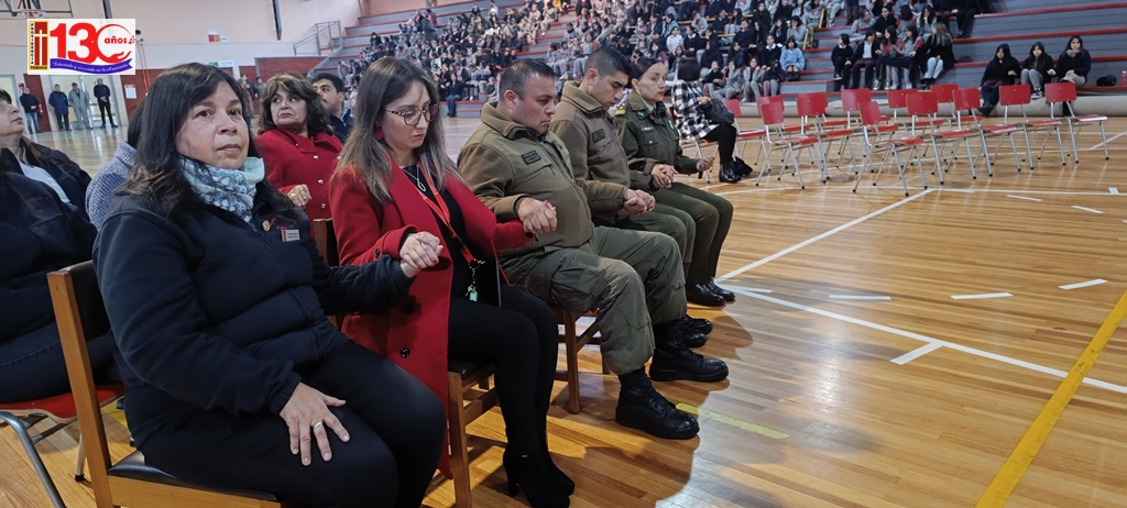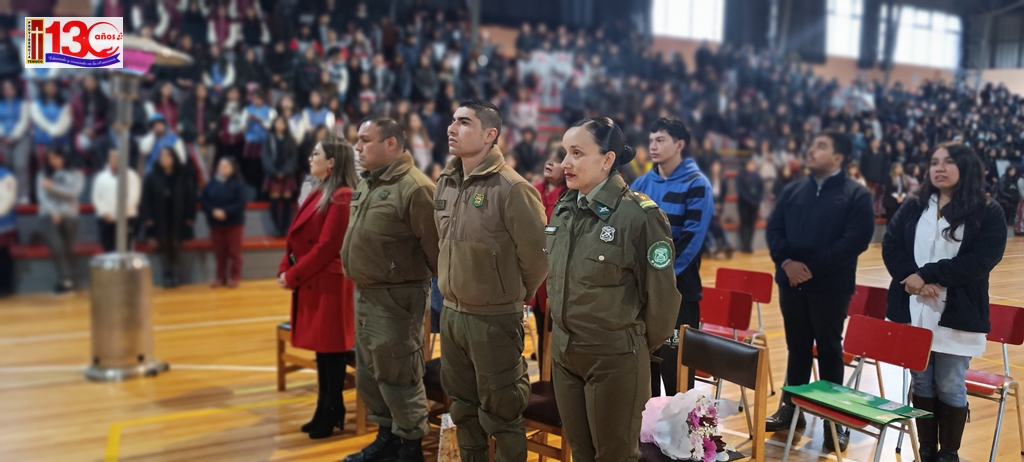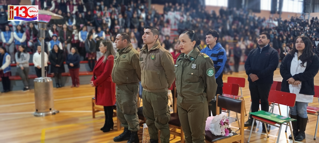 El acto cívico que realizó el colegio el pasado lunes 29 de Abril, para homenajear a los mártires de Carabineros de Chile fue una emotiva y significativa ceremonia que permitió a la comunidad escolar rendir homenaje a los valientes Carabineros que han sacrificado sus vidas en el cumplimiento de su deber. El evento, que tuvo lugar en el gimnasio del establecimiento, fue organizado con objeto de inculcar valores ciudadanos en las y los estudiantes.