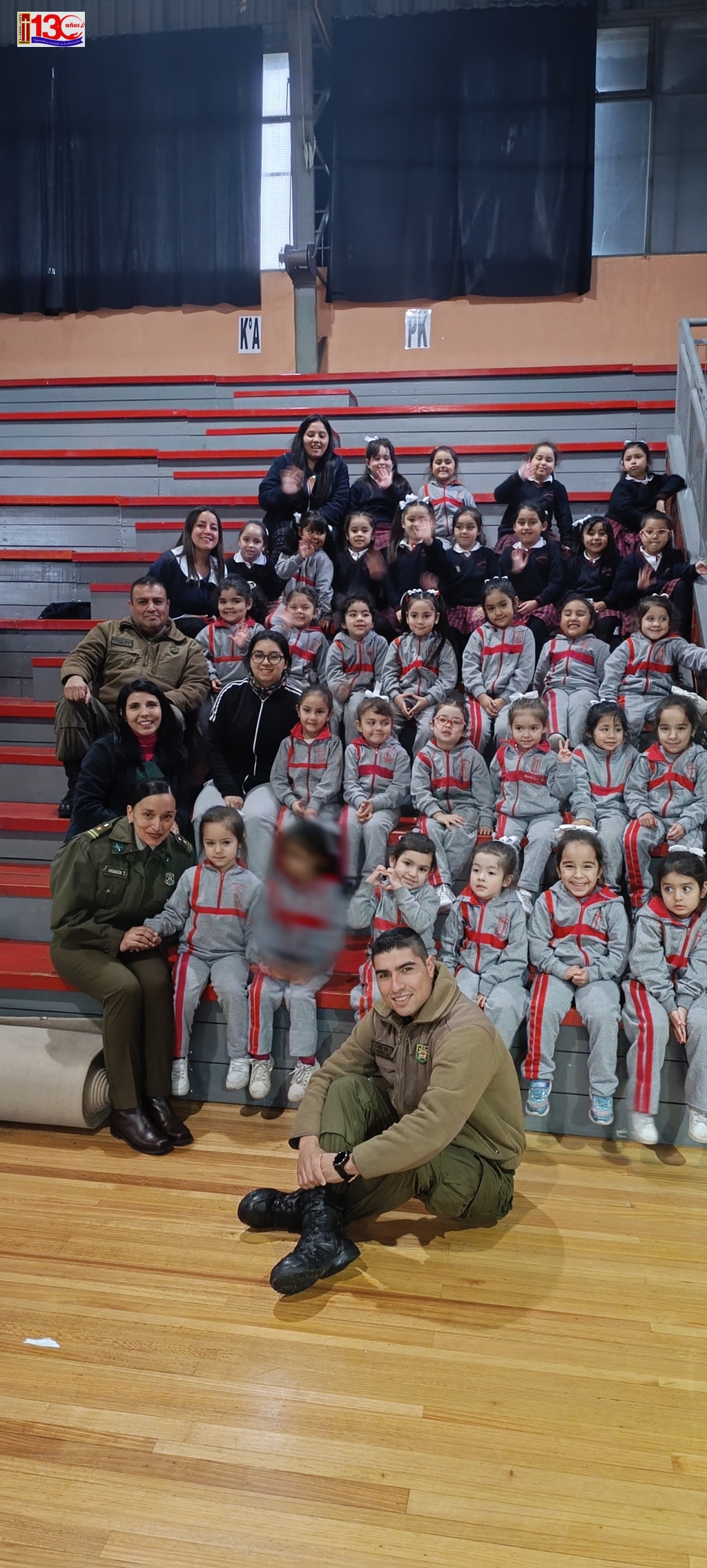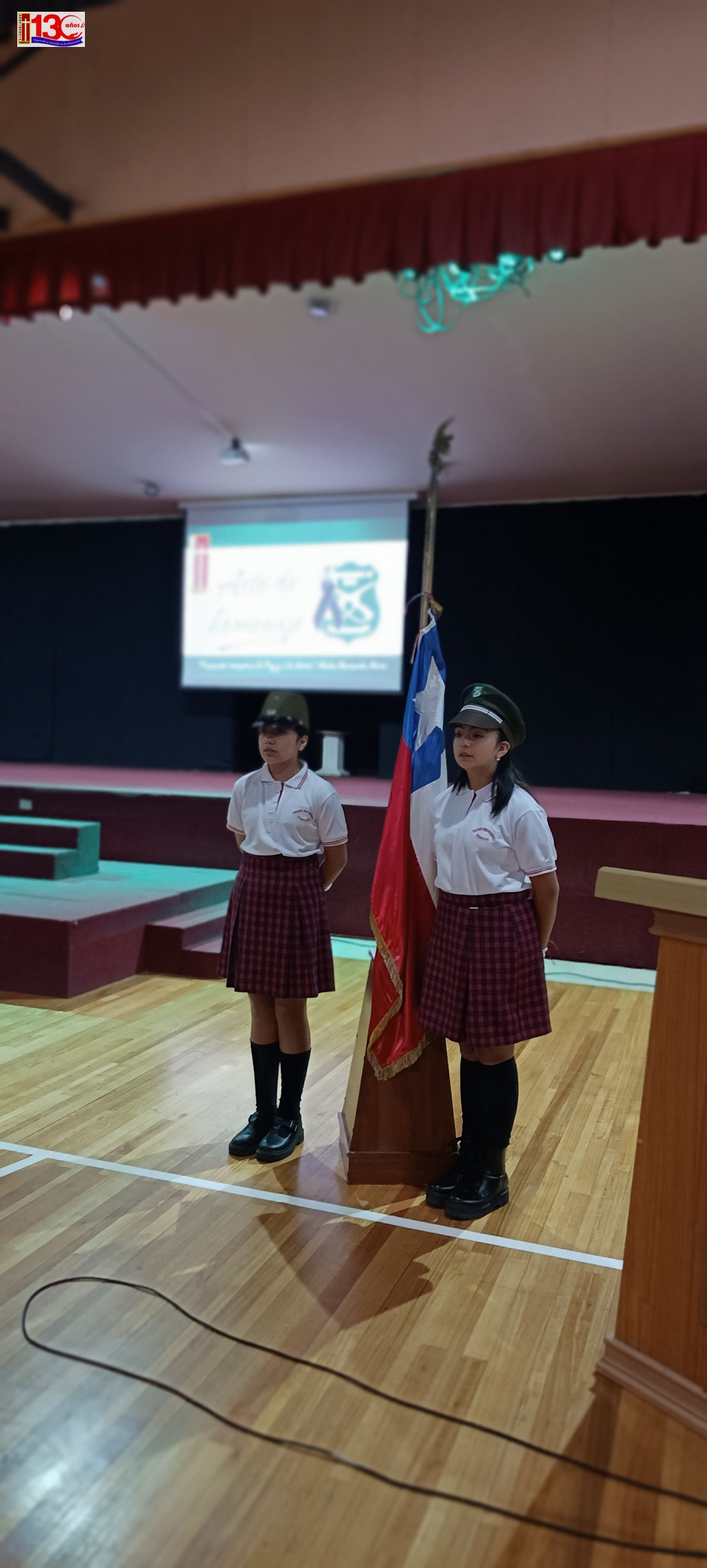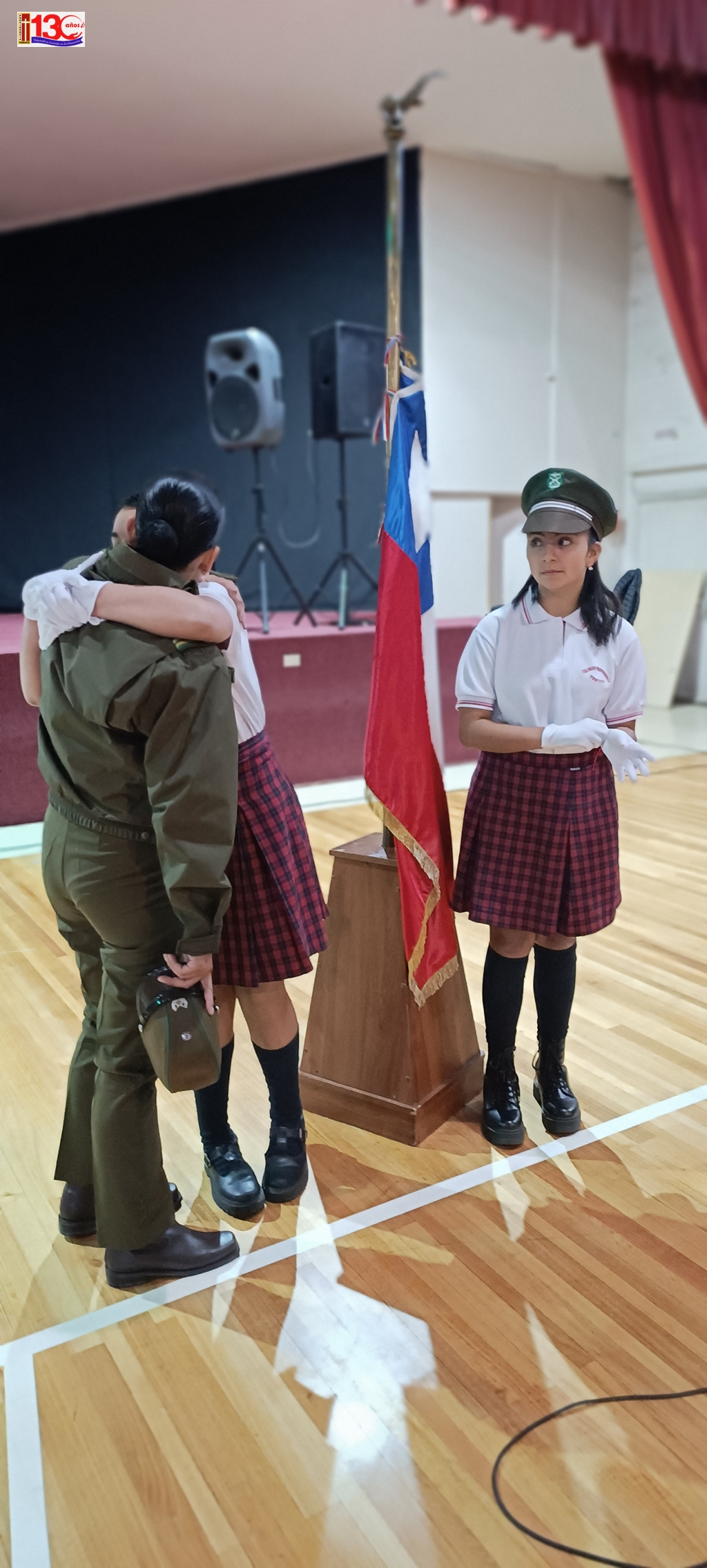 El acto cívico que realizó el colegio el pasado lunes 29 de Abril, para homenajear a los mártires de Carabineros de Chile fue una emotiva y significativa ceremonia que permitió a la comunidad escolar rendir homenaje a los valientes Carabineros que han sacrificado sus vidas en el cumplimiento de su deber. El evento, que tuvo lugar en el gimnasio del establecimiento, fue organizado con objeto de inculcar valores ciudadanos en las y los estudiantes.