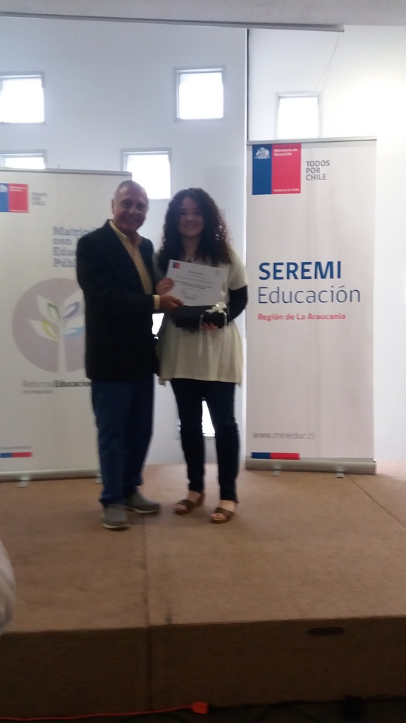La Secretaria Ministerial invito a Katherine Sandoval Lopez, egresada de cuarto medio de nuestro colegio, por haber obtenido uno de los mas altos puntajes de PSU de la región. En esta ocasión asistió su Mama y un representante del Colegio. Felicitamos a Katherine por tan buen resultado y le deseamos mucho éxito en su siguiente etapa de estudios.