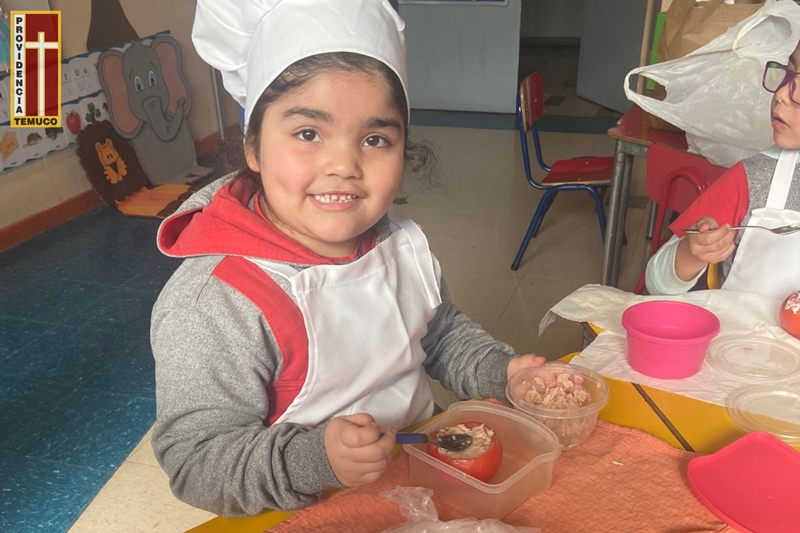 El pasado miércoles 13 de agosto, nuestras estudiantes de Kínder vivieron una experiencia diferente y muy entretenida: la preparación de “Tomates rellenos” con atún o pollo desmenuzado al más puro estilo de Ratatouille.