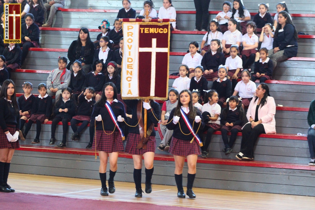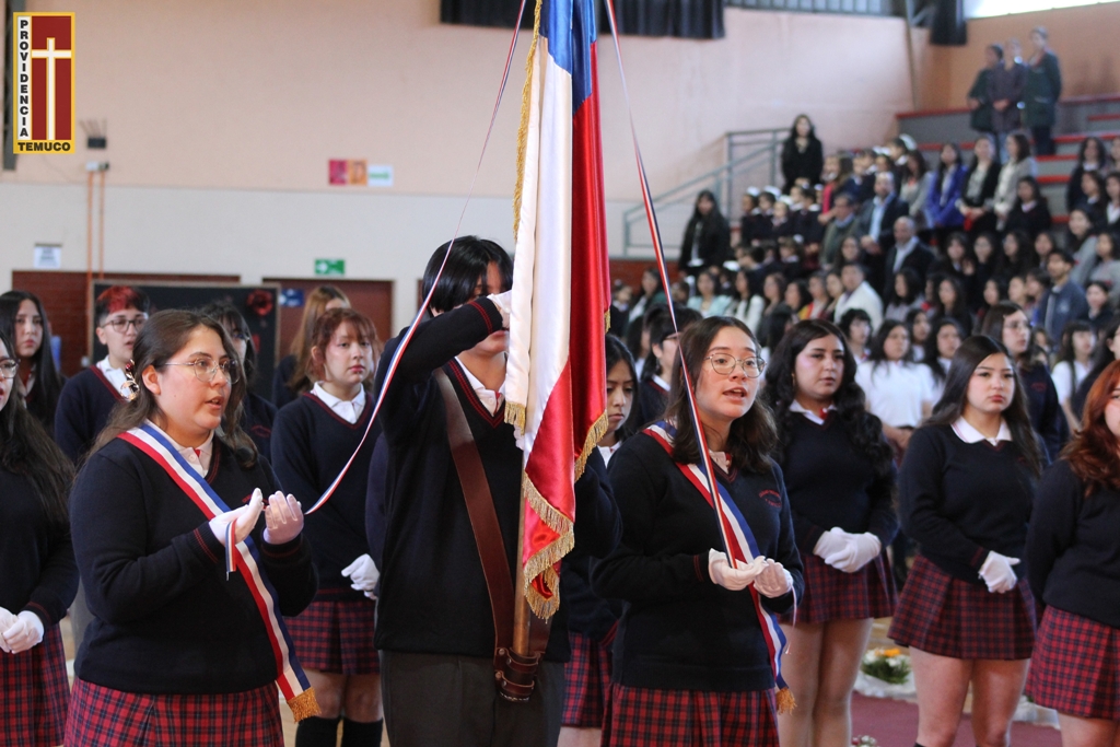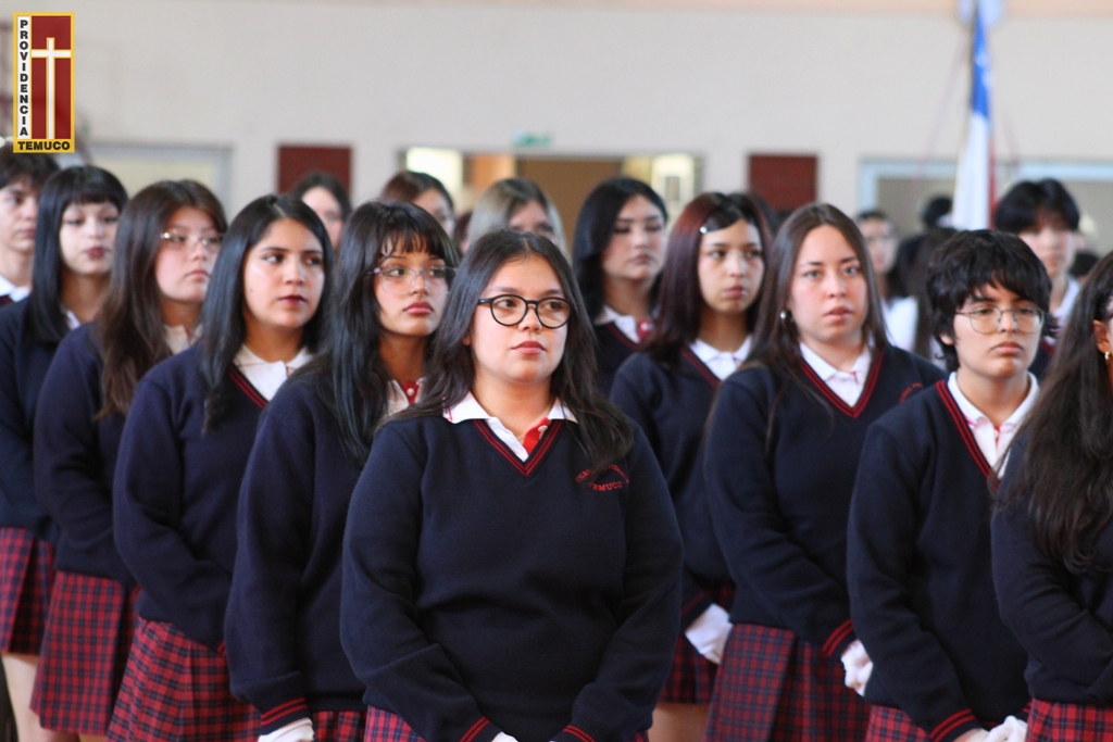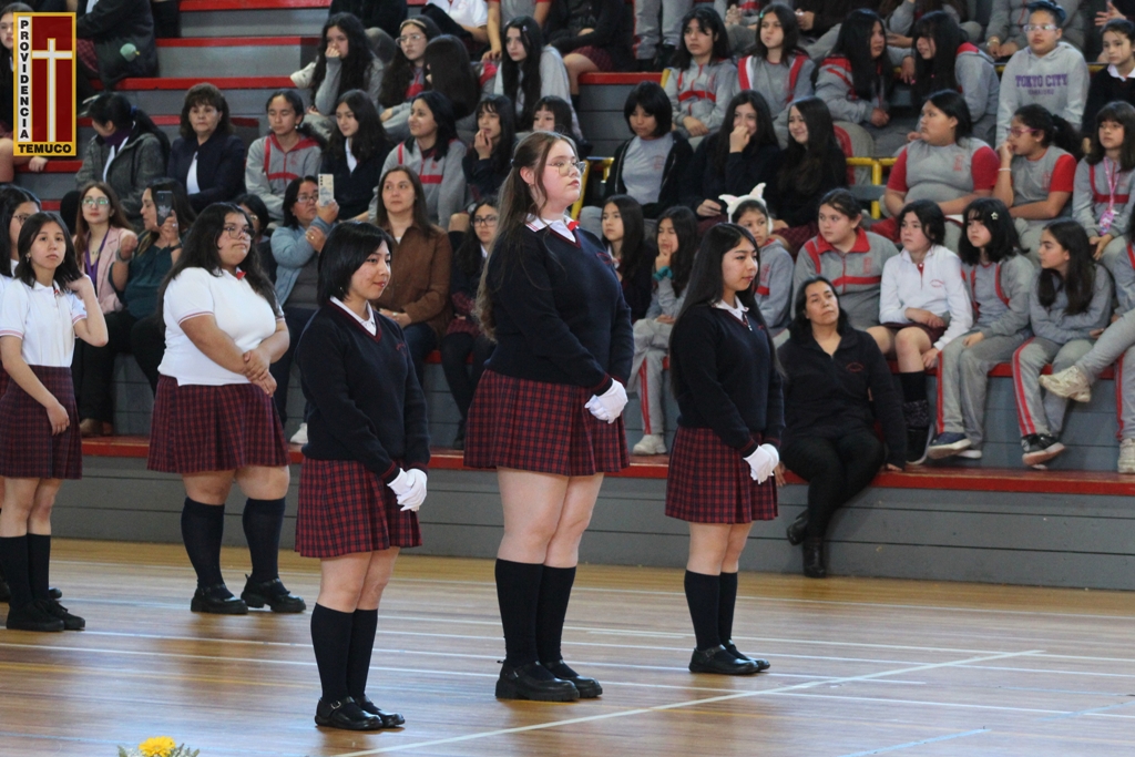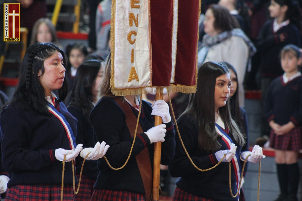 Al finalizar la ceremonia, las nuevas abanderadas y portaestandartes de Tercero Medio tomaron ubicación como futura Generación 2025, asumiendo con entusiasmo el compromiso de representar el espíritu de la Providencia el próximo año.