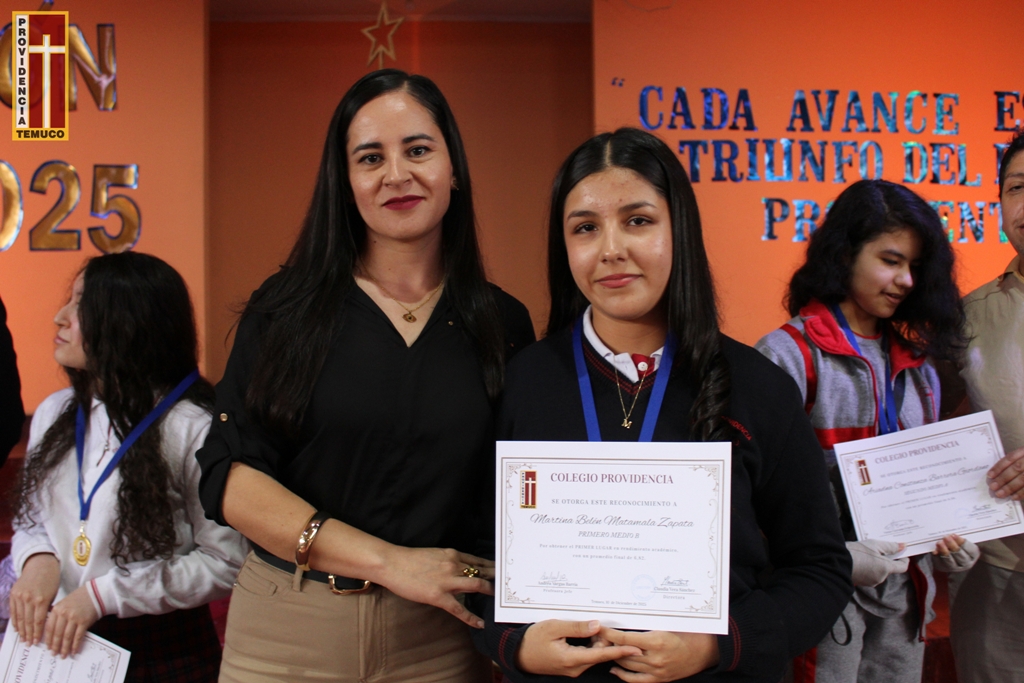 El pasado 10 de diciembre se celebró en nuestro colegio Providencia de Temuco la ceremonia de premiación 2025, instancia en la que reconocimos a nuestros y nuestras estudiantes de Educación Parvularia, Enseñanza Básica y Enseñanza Media por su gran desempeño y compromiso durante el año escolar 2025.