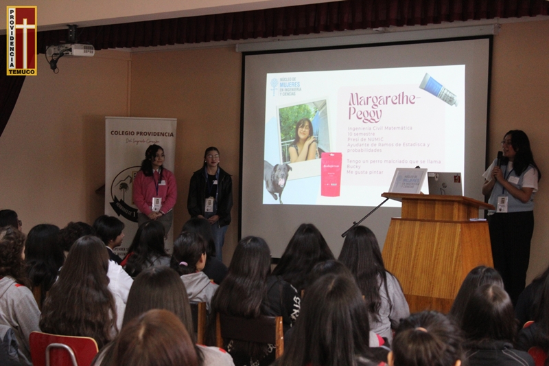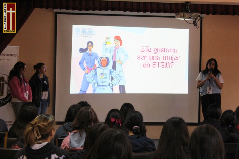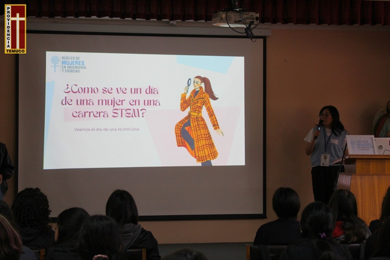 El pasado miércoles 8 de octubre en el marco de la celebración de la Semana de Las Ciencias 2025, se llevó a cabo en el auditorio de nuestro colegio la charla “Derribando mitos sobre las mujeres en carreras STEM” dictada por el Núcleo de Mujeres en Ingeniería y Ciencias (NUMIC) de la Universidad de La Frontera, de la cual participaron nuestras estudiantes de primero medio como también estudiantes que han presentado competencias y actitudes destacadas en las áreas STEM.