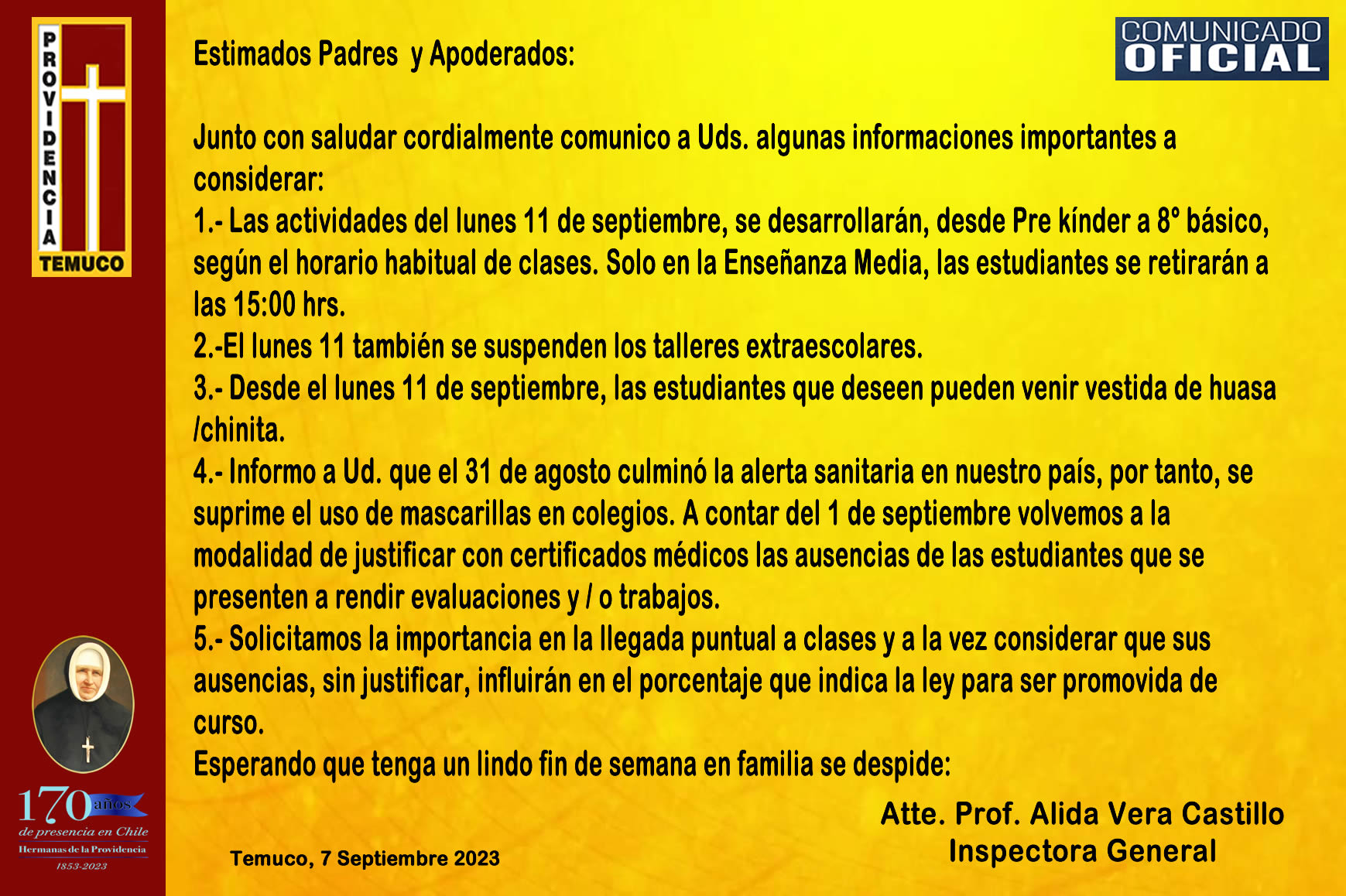 El Colegio Providencia de Temuco tiene como misión ser presencia de Dios Padre Providente y de nuestra Madre Virgen de los Dolores, en la acogida, confianza, respeto, comprensión, humildad y misericordia.