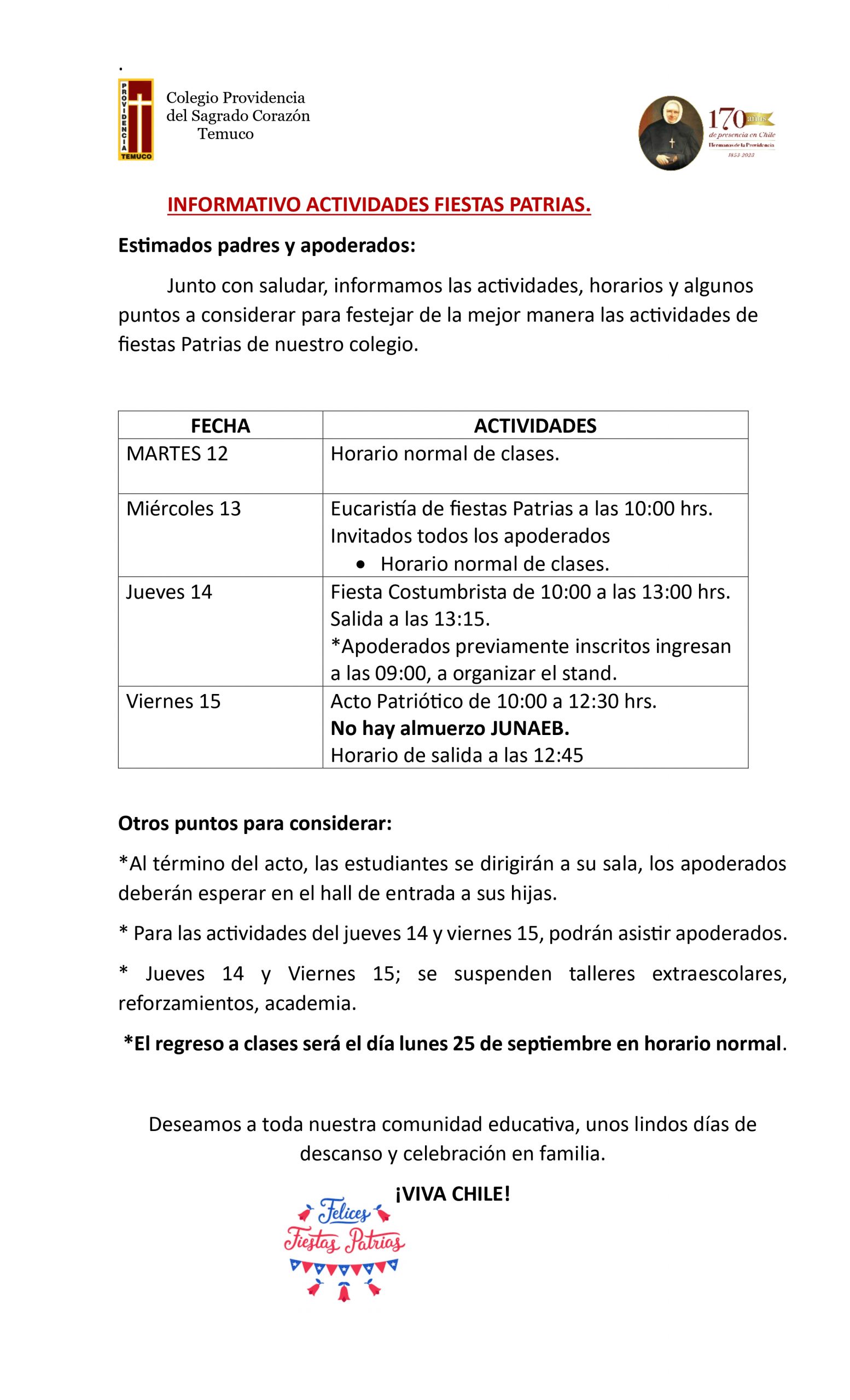 El Colegio Providencia de Temuco tiene como misión ser presencia de Dios Padre Providente y de nuestra Madre Virgen de los Dolores, en la acogida, confianza, respeto, comprensión, humildad y misericordia.