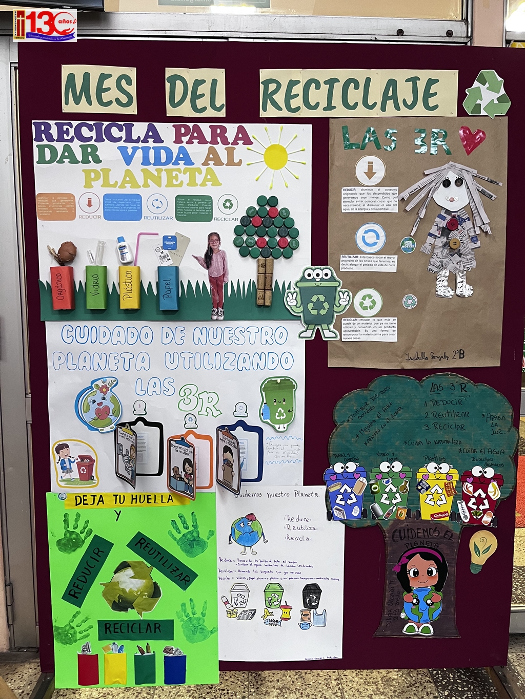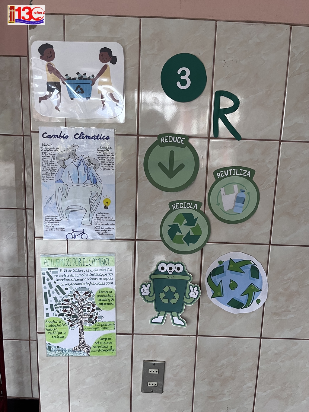 Carteles de las estudiantes que participaron en el concurso “Familias Sostenibles” para conmemorar el Día del Reciclaje el 17 de mayo del presente año.
