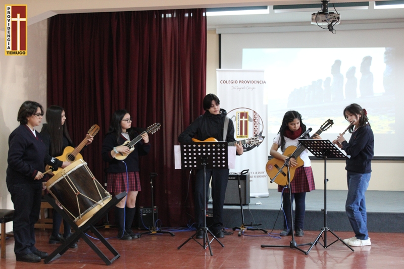 En este contexto, nuestro Departamento de Historia y Geografía, en colaboración con el Departamento de Artes, organizó una significativa intervención en el auditorio del colegio, donde diferentes cursos se unieron para rendir homenaje a las mujeres indígenas y a su legado cultural.