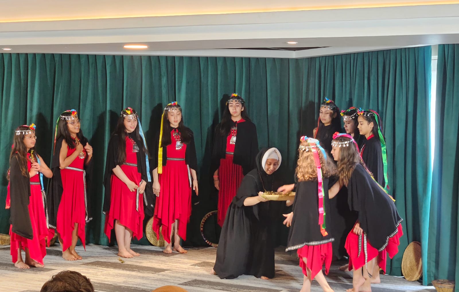 El pasado viernes 27 de Diciembre, estudiantes de gimnasia rítmica de nuestro colegio, participaron en la ceremonia de Unión Canónica de la Congregación de las Hermanas de la Providencia, en el Hotel NH de la ciudad de Santiago, donde representaron a la región de la Araucanía con una danza mapuche qué estuvo cargada de emotividad y elegancia en sus cada uno de sus pasos.