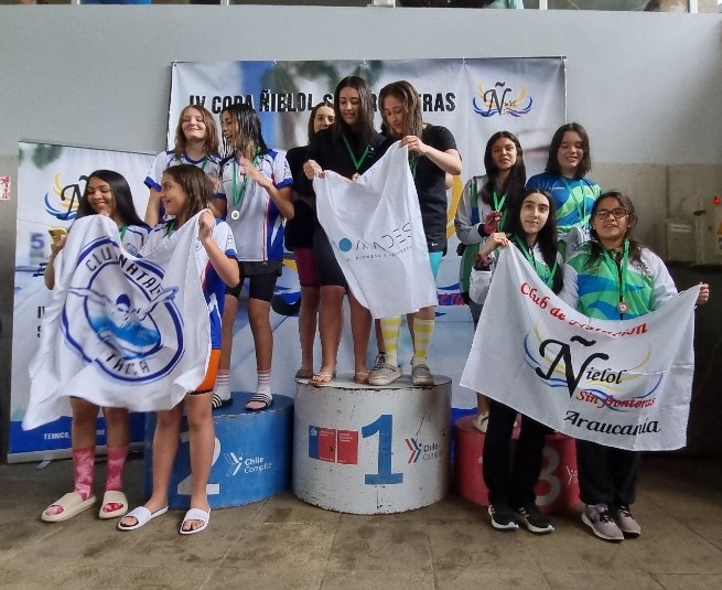 Nos complace compartir los logros deportivos de Celeste Molina Parra, estudiante de 8° Básico A de nuestro colegio. En el reciente Campeonato “Copa Ñielol sin Fronteras” de Natación, celebrado el 4 de Noviembre, Celeste brilló al obtener el 2° lugar en la categoría de 100 metros estilo pecho y el 3° lugar en relevos de 100 metros combinados.
