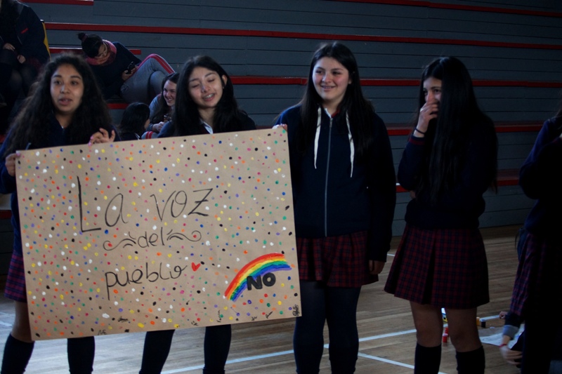 El día viernes 5 de octubre se conmemoró el Día de la democracia, dicha actividad tuvo como objetivo generar una instancia con las estudiantes que aporte herramientas para ejercer sus derechos, para participar en los asuntos de interés común, para fortalecer su desarrollo moral y para asumir de manera responsable su papel en la construcción de la sociedad. Bajo esta premisa se desarrollaron diversas actividades con los niveles de pre básica, como así también enseñanza básica y enseñanza media, además se dio gran relevancia a la conmemoración de los 30 año del plebiscito realizado en Chile en el año 1988.