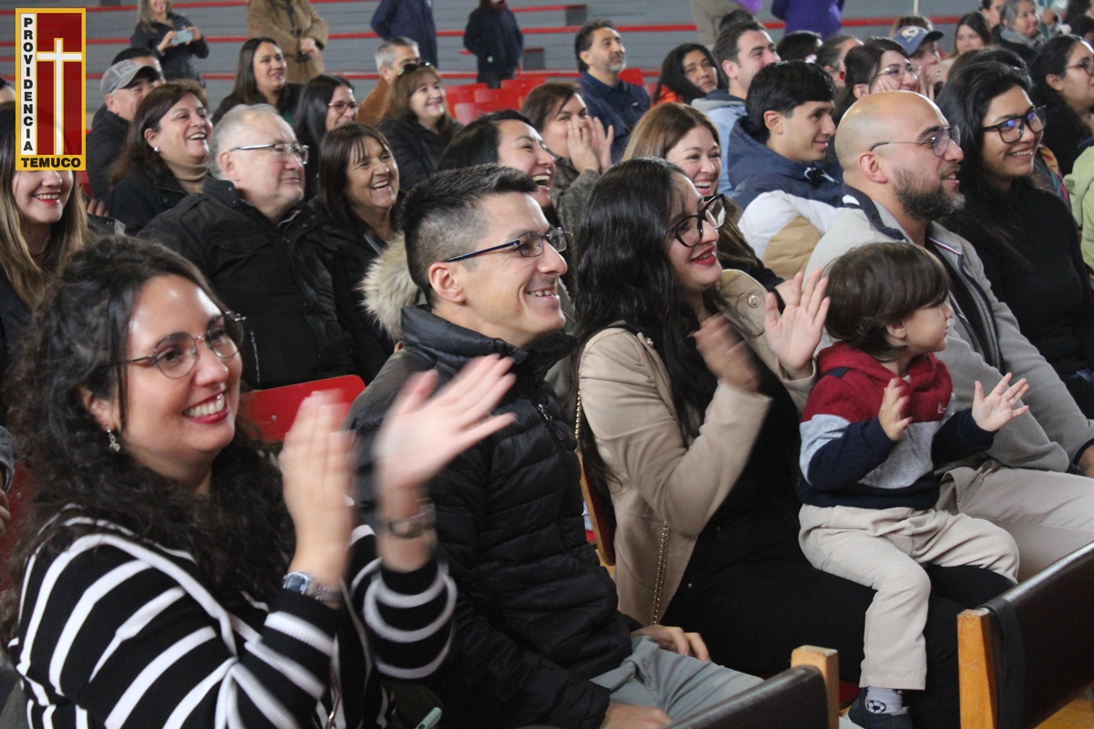 La jornada comenzó con la tradicional bendición del padre Giglio Linfatti, quien dio el inicio a esta emotiva celebración. Luego, nuestros estudiantes de prekínder encantaron al público con una alegre coreografía de la canción “Tengo una mancha loca”, preparada con mucho entusiasmo y cariño.