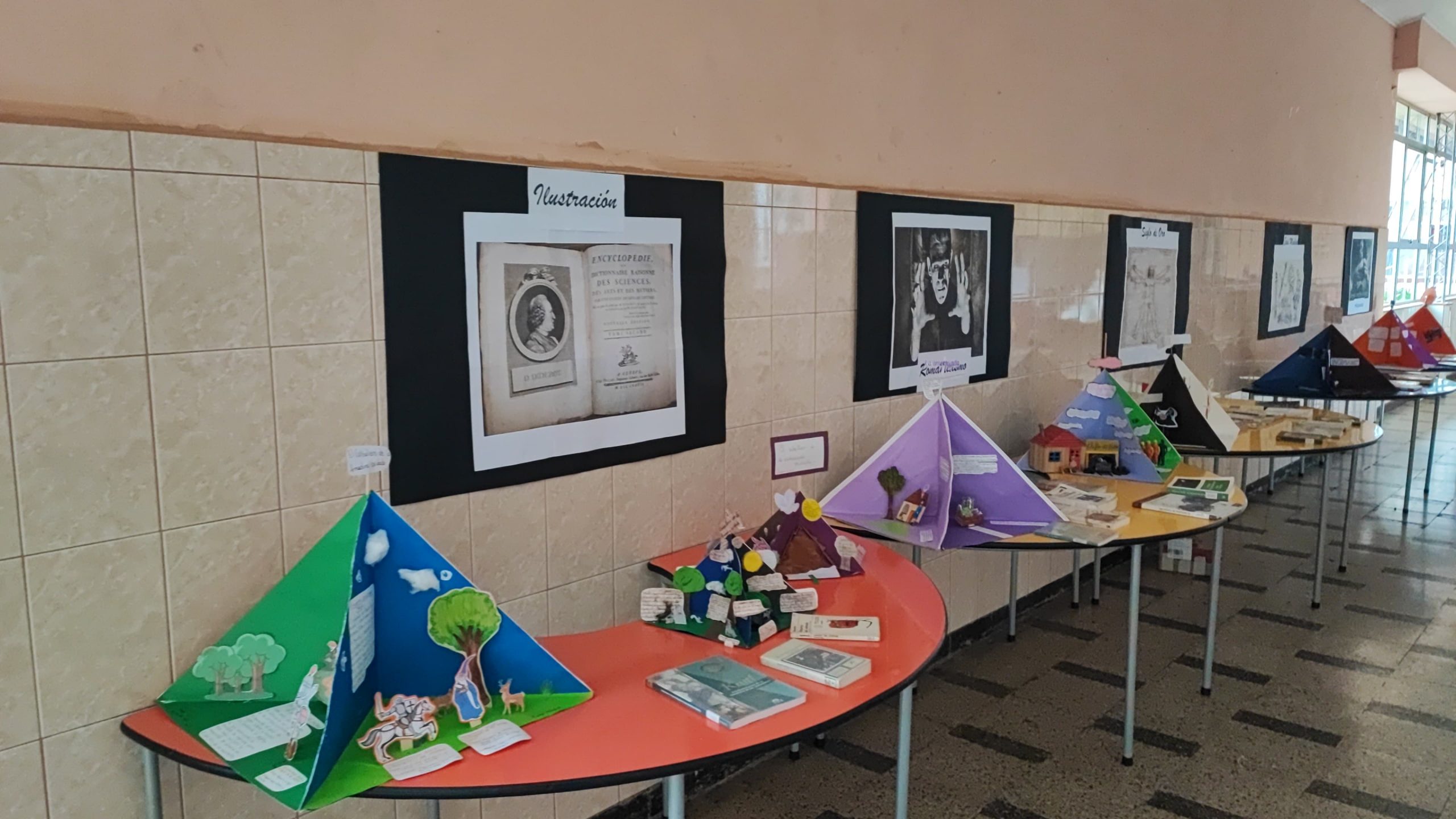 Durante la celebración del Día del Libro, nuestro colegio se llenó de actividades que involucraron tanto a profesores como a estudiantes. Una de las más destacadas fue la exhibición artístico-literaria de trioramas (originales estructuras en forma de pirámide) creados por nuestros estudiantes para representar creativamente distintas obras y temáticas literarias. También se realizó una exposición de épocas literarias, acompañada por una cuidada selección de libros representativos de cada periodo. Además, se entregaron detalles a los estudiantes, como marcadores de libros, para incentivar aún más el gusto por la lectura.