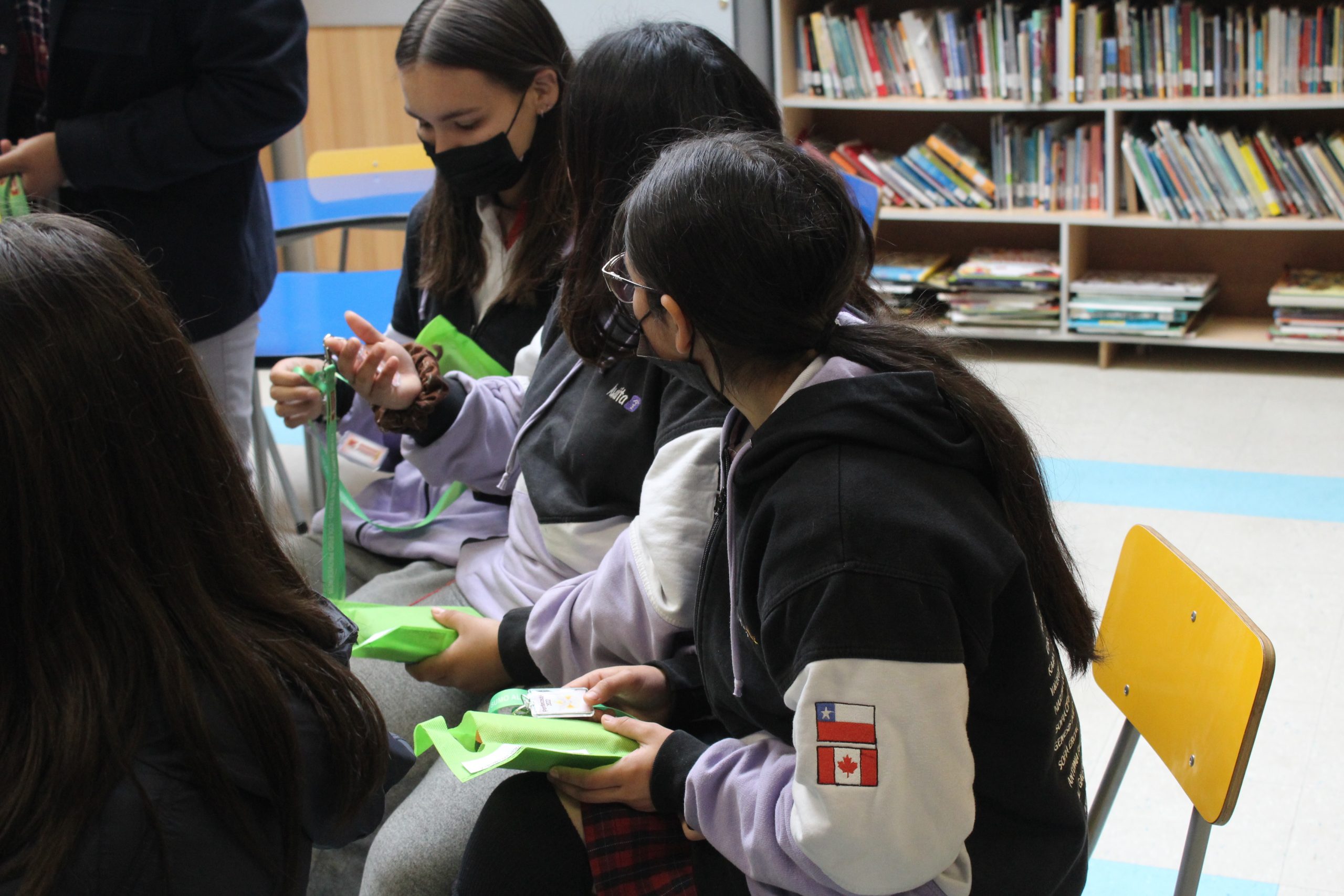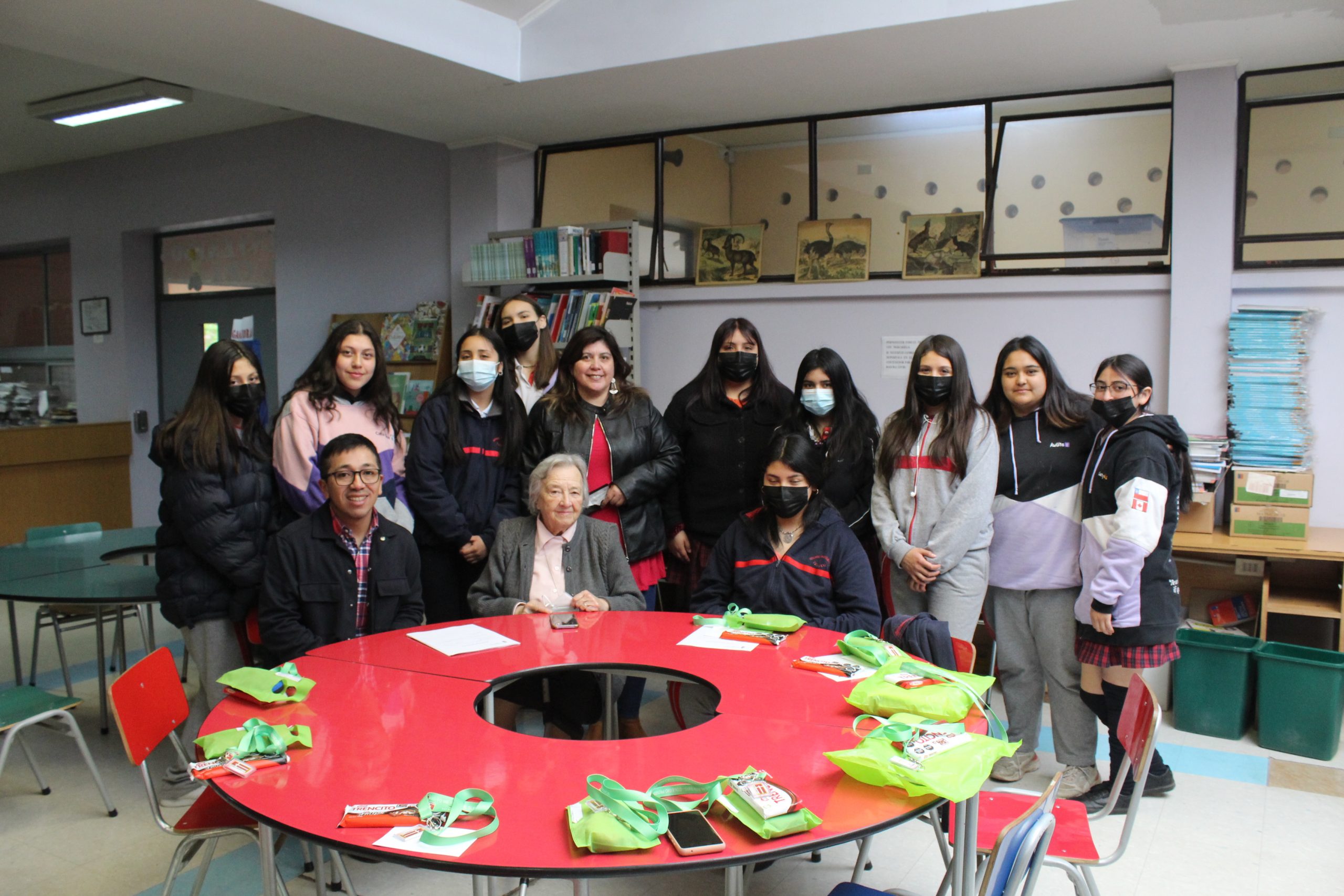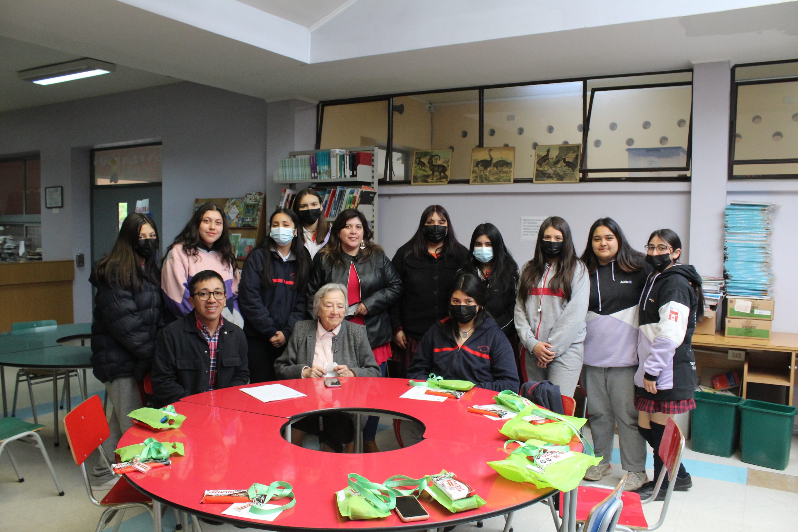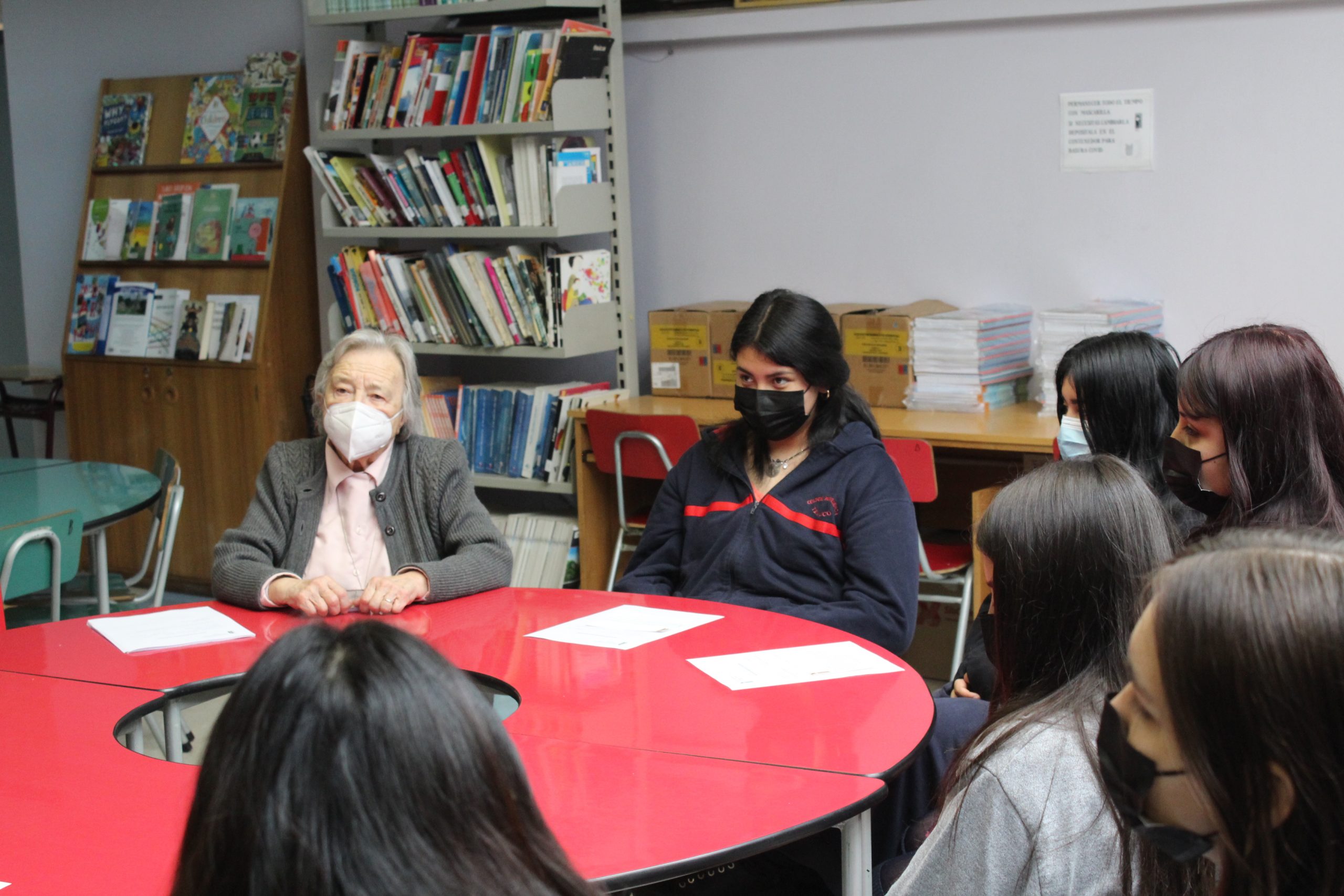 En la actividad de entrega de Beneficio se realiza un conversatorio con las alumnas en base a sus intereses y proyecciones educacionales, donde participa la Madre Liliana Contador, la asistente social Sra. Jessica Betzhold y el profesor encargado de SEP Carlos Solis.
