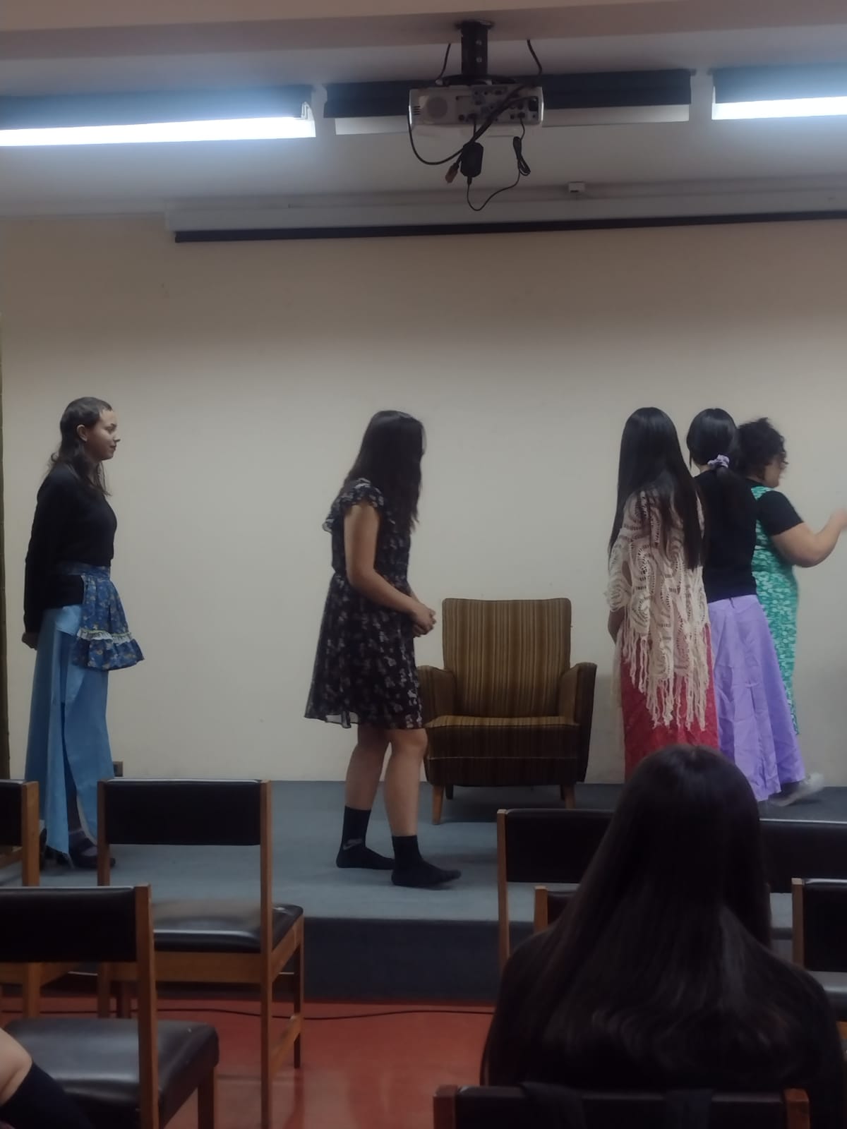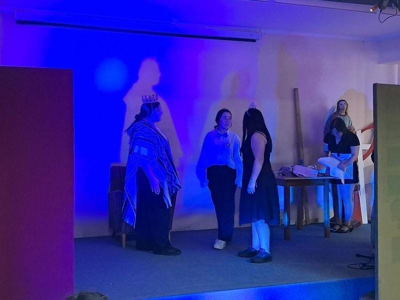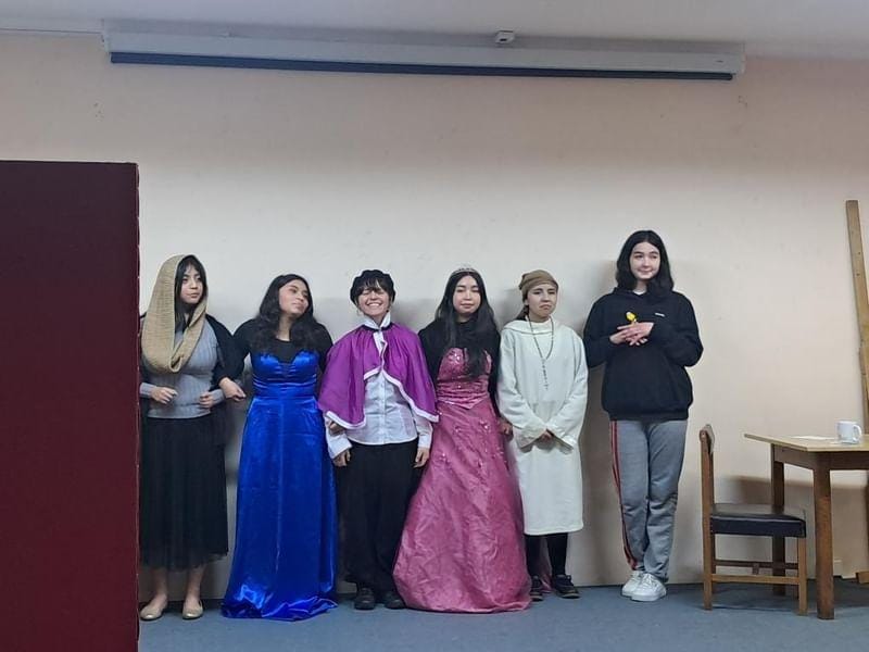 Además de actuar, las estudiantes se encargaron de preparar la escenografía, el maquillaje y el vestuario, demostrando su creatividad y trabajo en equipo. Esta actividad les permitió aprender de una manera práctica y divertida, poniendo en práctica todo lo que han estudiado sobre teatro.