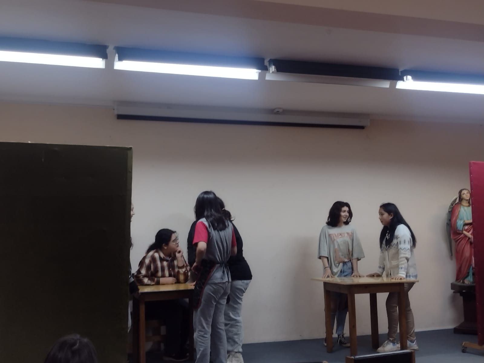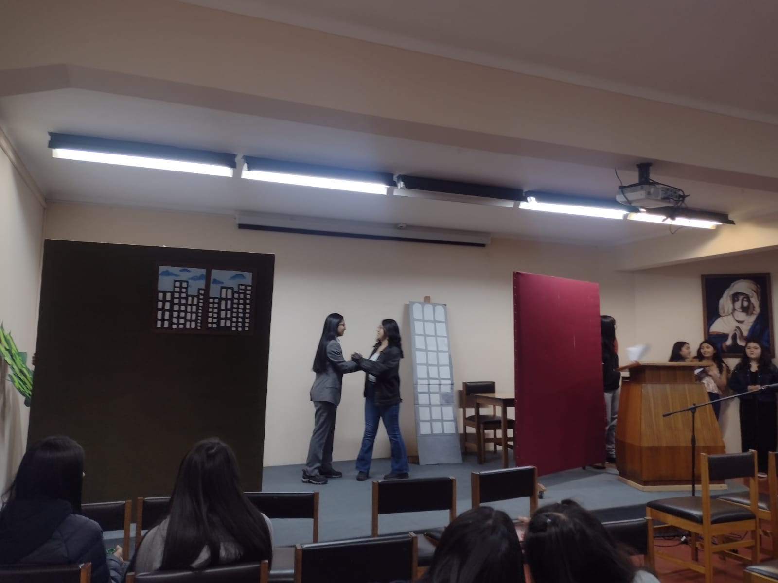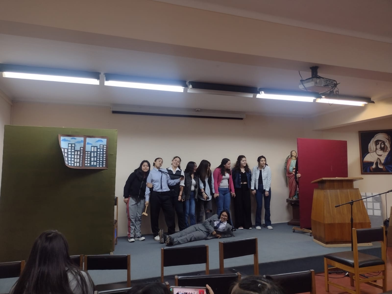 Las estudiantes de I° Medio realizaron una actividad especial en la clase de Lengua y Literatura, donde presentaron una obra de teatro. Esta actividad forma parte de la Unidad de Género Dramático, donde las alumnas no solo actuaron, sino que también escribieron sus propios diálogos y organizaron todo lo necesario para la presentación.
