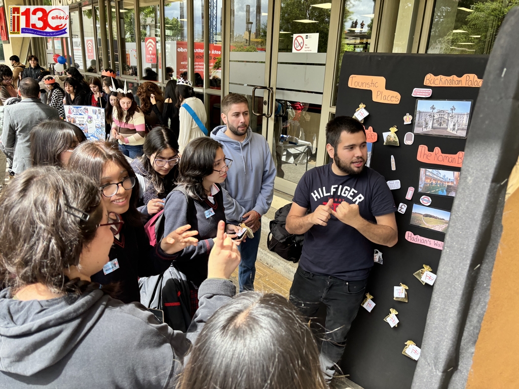 Estudiantes de la Academia de Inglés, junto a su profesor de Inglés José Bascur Lorca, asistieron a la English-Speaking Countries Fair 2024, un evento organizado el pasado 26 de Noviembre por estudiantes de la Carrera de Pedagogía en Inglés de la Universidad Autónoma de Chile, dedicado a celebrar la cultura y la literatura de los países de habla inglesa.