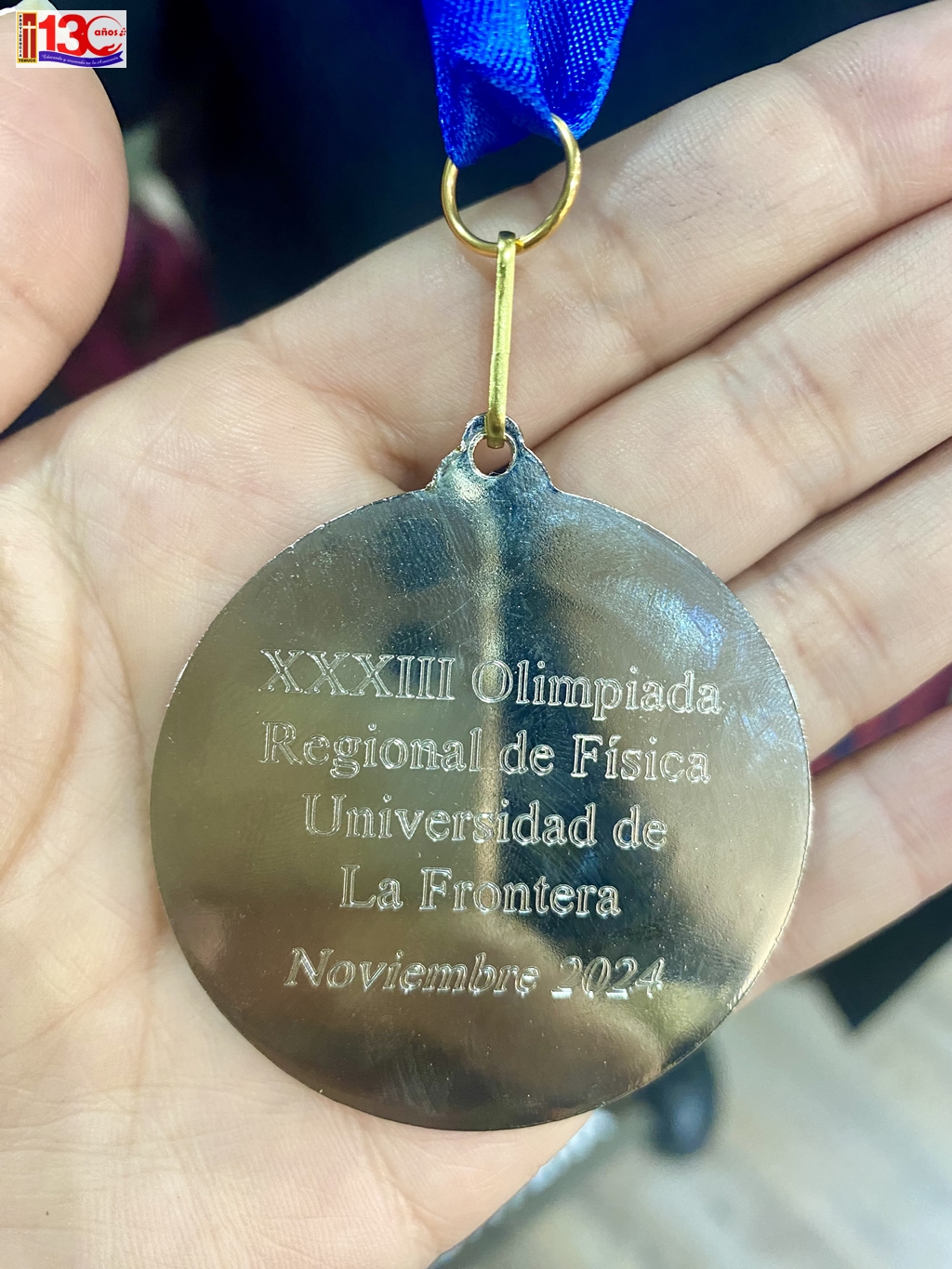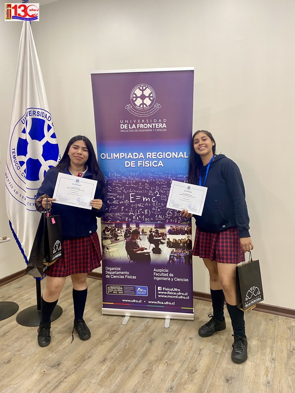 Con mucho orgullo les contamos que el día martes 26 de noviembre, nuestras estudiantes de I° medio B Valentina Caro e Isabel Maldonado, han obtenido medalla de plata en las XXXIII Olimpiadas Regionales de Física, organizada por la Universidad de La Frontera. Fueron meses de preparación, los cuales permitieron que, guiadas por su profesora de Física Camila Mella, pudiesen avanzar en las distintas etapas y obtuvieran excelentes resultados. Felicitamos a las estudiantes, quienes son ejemplo de esfuerzo, perseverancia y constancia; a sus familias por siempre apoyarlas en todos los desafíos que asumen y por su puesto a la profesora que las preparó y acompañó en el proceso.