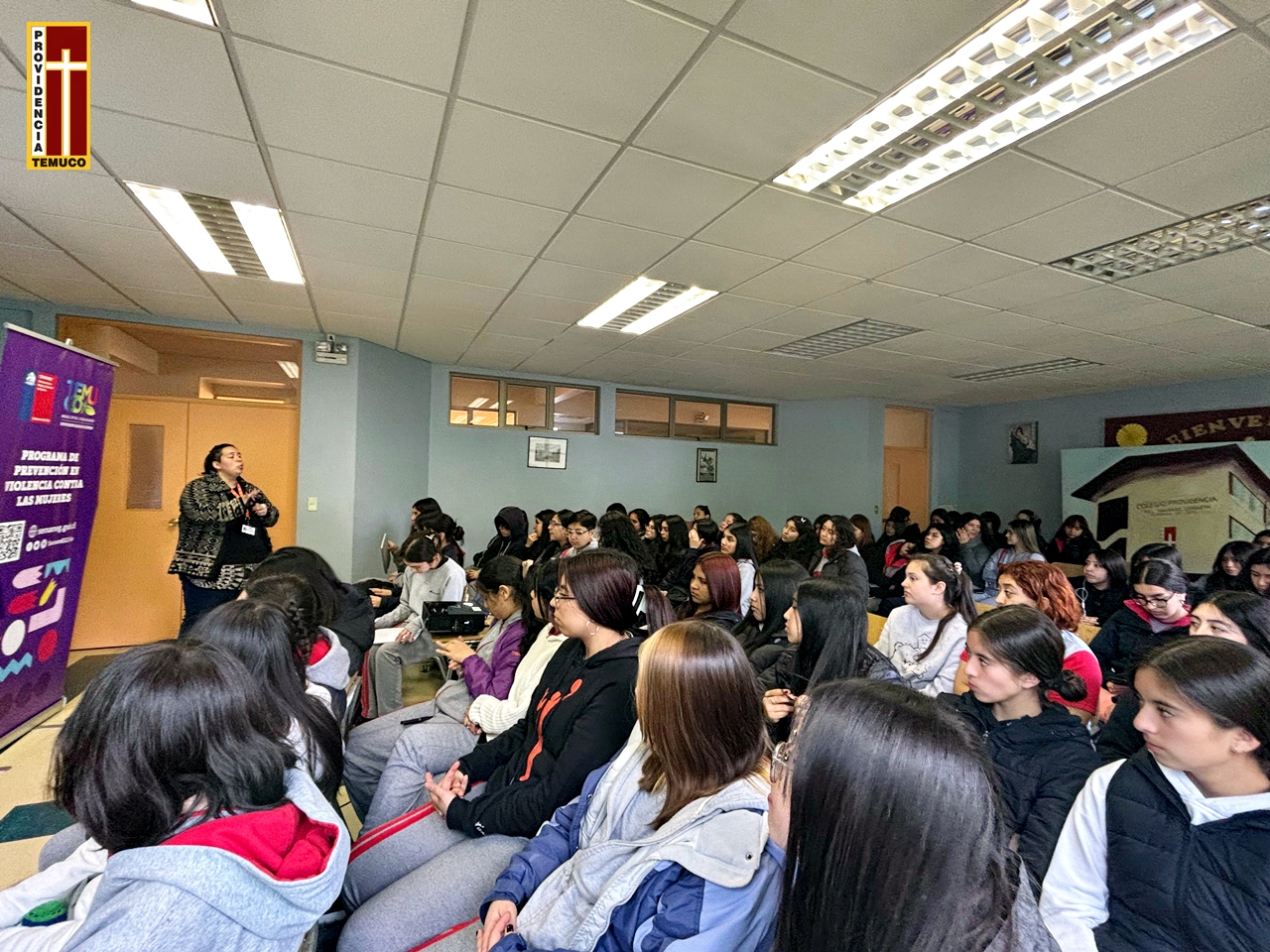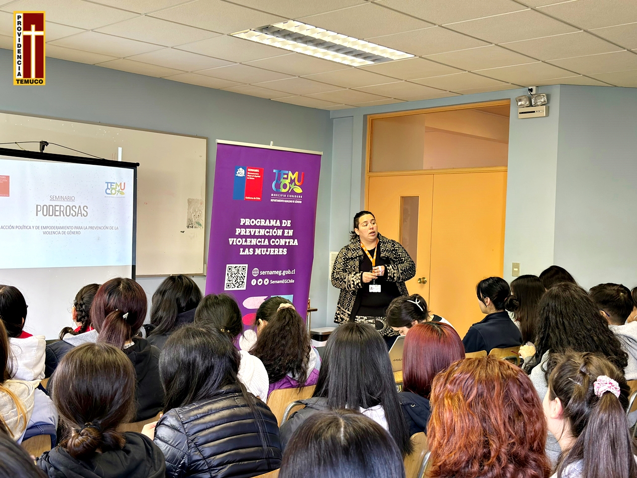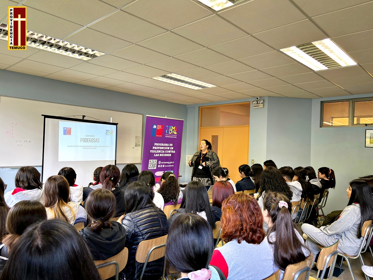 El miércoles 15 de noviembre, en una destacada iniciativa para fomentar la conciencia y el compromiso en la erradicación de la violencia contra la mujer, los estudiantes de terceros medios de nuestro establecimiento educativo fueron partícipes hoy de un enriquecedor seminario denominado “Poderosas”. Esta actividad, realizada en dependencias del internado de nuestro establecimiento y coordinada por la encargada de Plan de Sexualidad, Afectividad y Género de nuestro colegio, tuvo como objetivo principal sensibilizar a los jóvenes respecto a los diferentes tipos de violencia de género y reafirmar su compromiso en la lucha contra toda forma de violencia hacia la mujer.