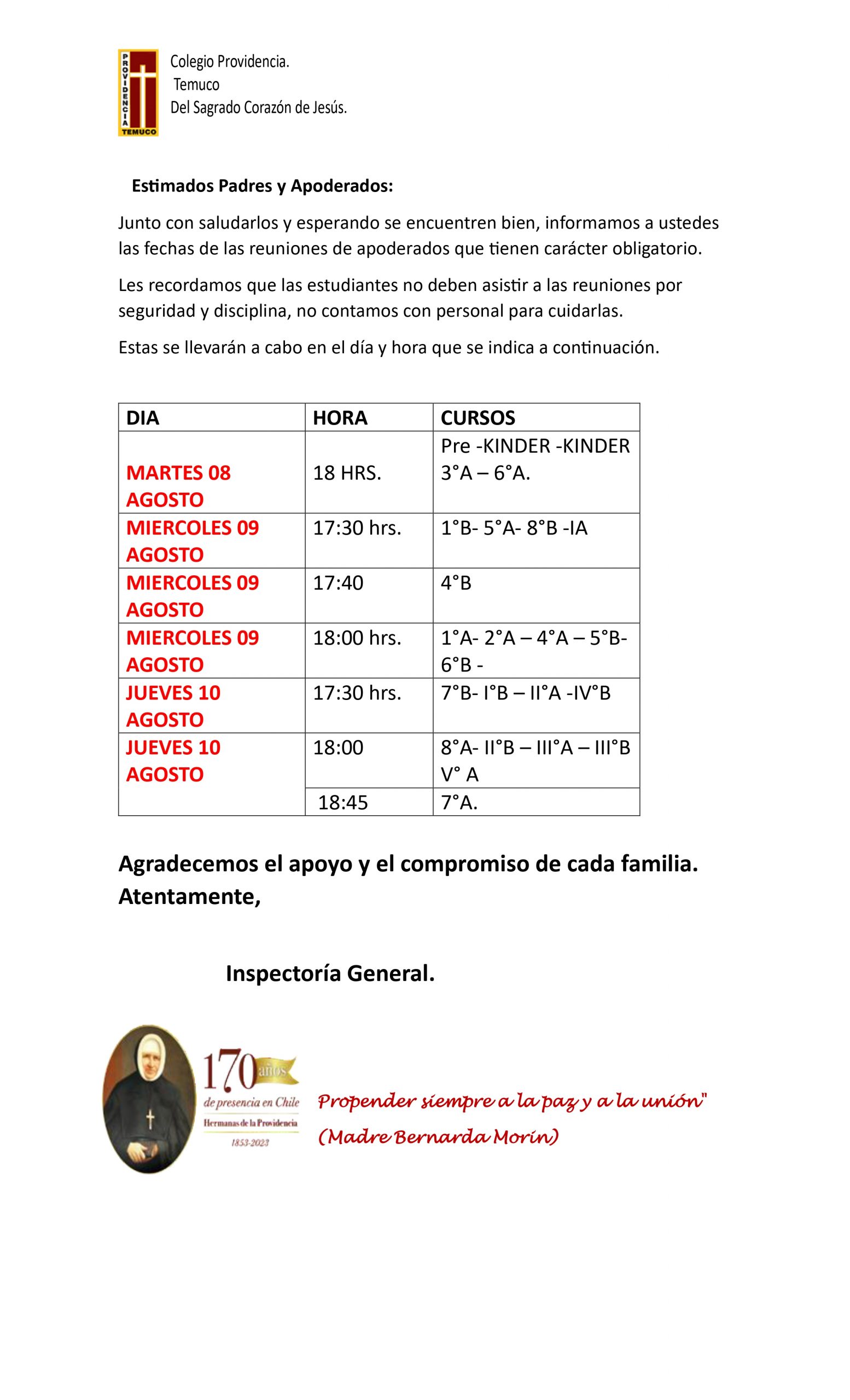 El Colegio Providencia de Temuco tiene como misión ser presencia de Dios Padre Providente y de nuestra Madre Virgen de los Dolores, en la acogida, confianza, respeto, comprensión, humildad y misericordia.