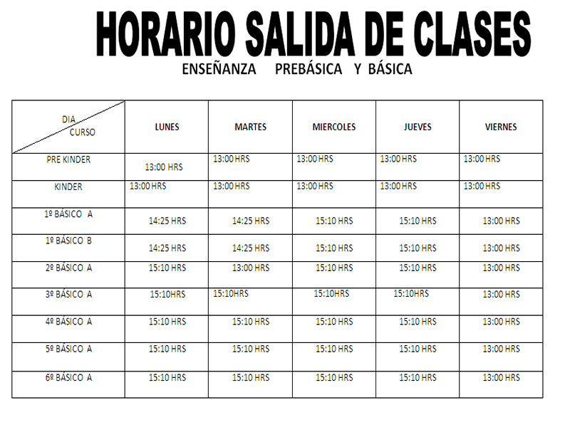 Aqui pueden encontrar los horarios de Salida de cada Curso: