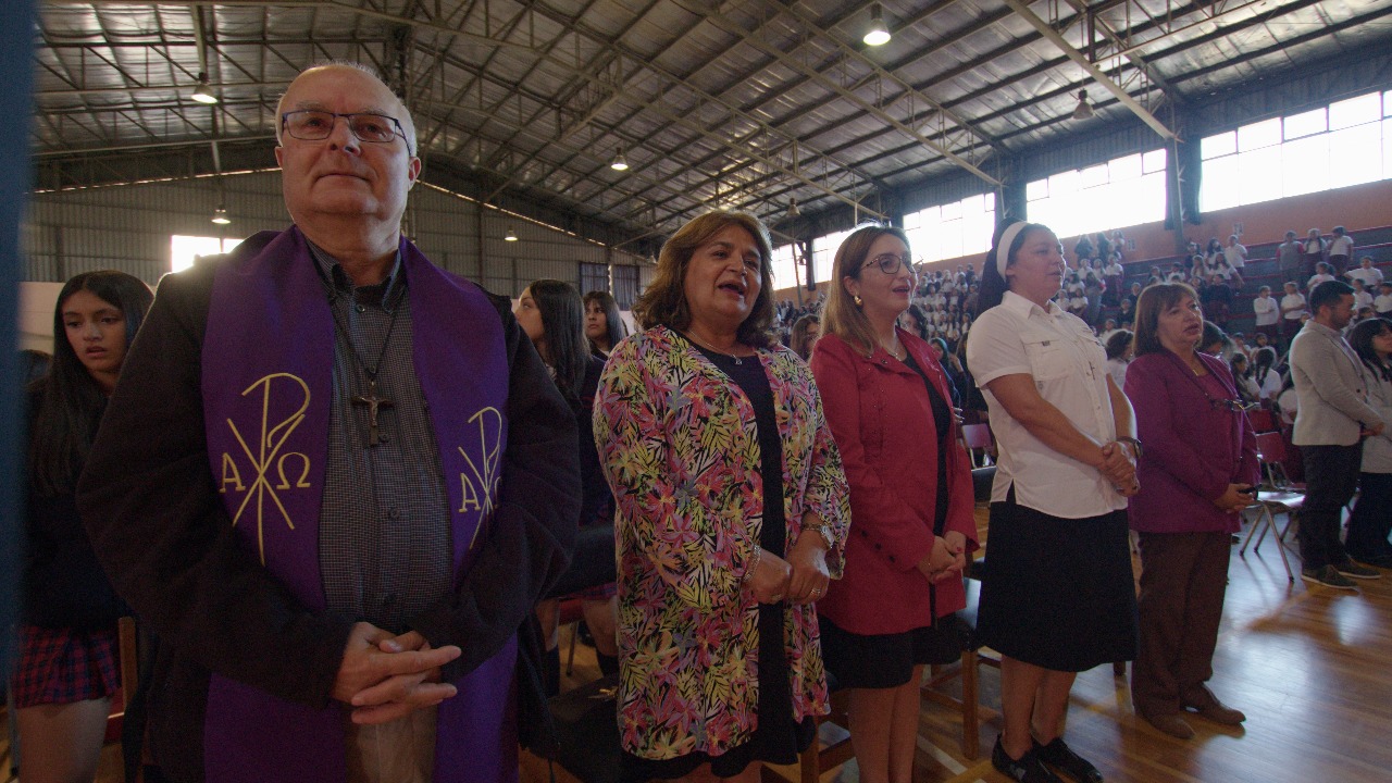 La directora del establecimiento, Claudia Vera, dio una cálida bienvenida a los estudiantes, familias y personal, resaltando la importancia de la Providencia de Dios en el quehacer educativo del colegio. “La providencia de Dios vela tiernamente por cada uno de nosotros, las caricias de Dios están presentes desde la mañana al anochecer”, expresó Vera, enfatizando el sello providencia de fomentar una actitud de confianza plena en el amor infinito de Dios y la Virgen María.