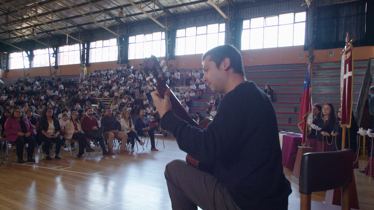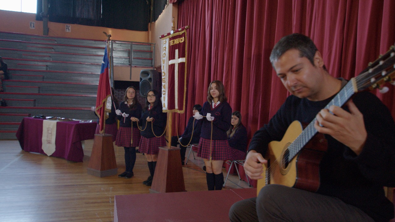 La ceremonia contó con la participación especial del profesor de música Claudio Rojas, quien deleitó a los presentes con una presentación musical. Para finalizar, la comunidad educativa entonó el himno del colegio y recibió la bendición final del Padre Giglio.