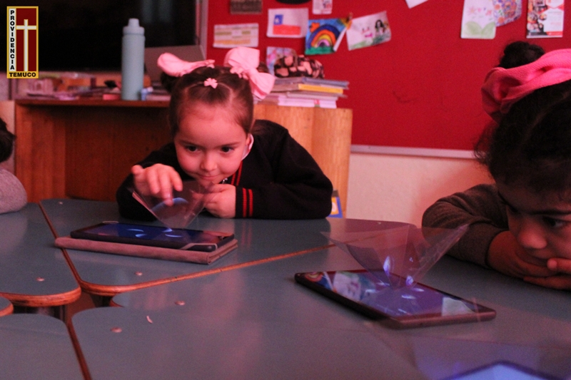 Durante la actividad, nuestras pequeñas crearon prismas piramidales donde pudieron proyectar imágenes y crear verdaderos hologramas que engañaron la vista de todos los presentes, haciendo aparecer objetos donde realmente no los hay, una hermosa ilusión óptica creada gracias a los fenómenos de reflexión y refracción de las ondas de luz.