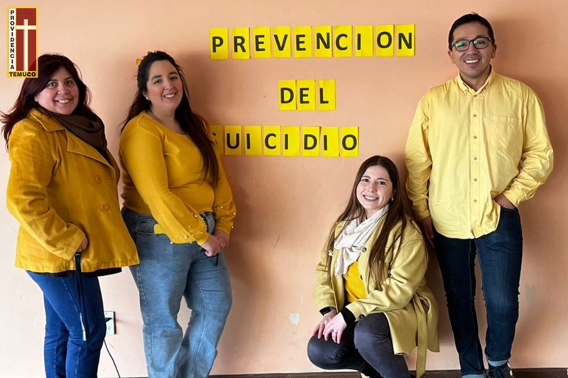 Esta fecha se asocia al color amarillo, símbolo de esperanza, vida y prevención. En este marco, nuestra comunidad escolar vivió una jornada especial en la que participaron diversas redes de apoyo externas gestionada por Jessica Betzhold, nuestra asistente social, entre ellas: Escuela Estética, AIEP, Programa de Admisión AIEP, Senda Previene Temuco y Cesfam El Carmen – Espacio Amigable.