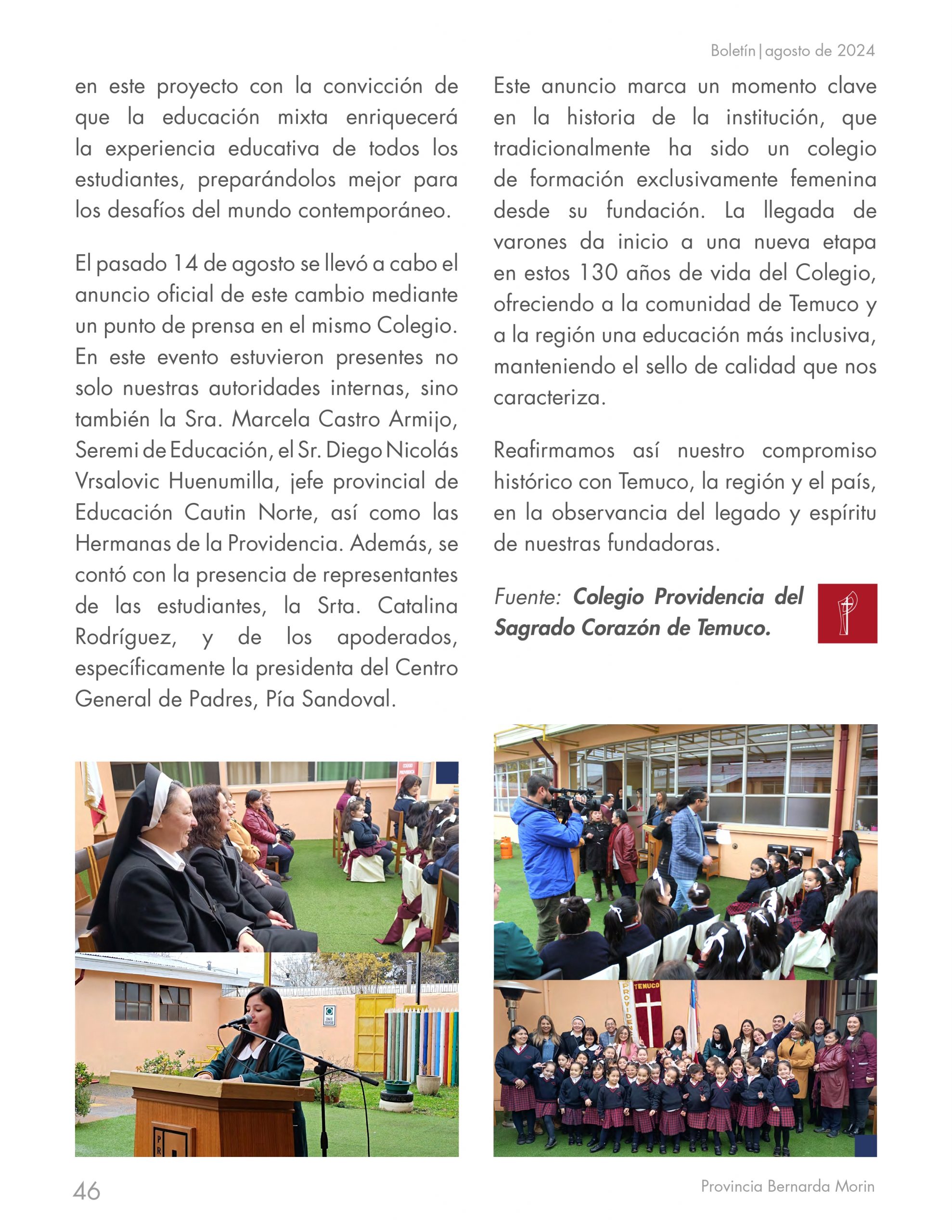 El Colegio Providencia de Temuco tiene como misión ser presencia de Dios Padre Providente y de nuestra Madre Virgen de los Dolores, en la acogida, confianza, respeto, comprensión, humildad y misericordia.