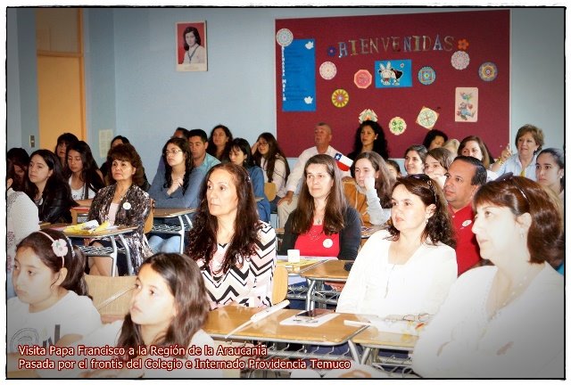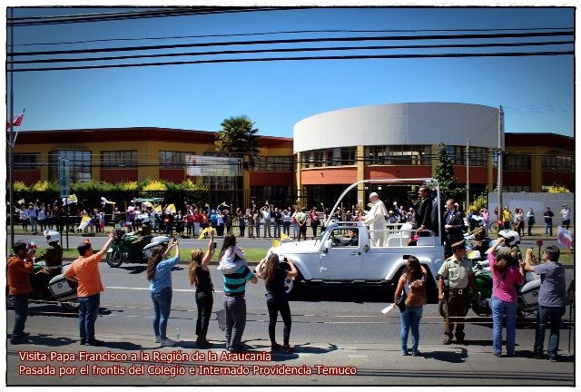 El día Miercoles 17 de enero, el Papa Francisco visitó la Región de la Araucania. Este día parte de la comunidad educativa se reunió en el colegio para ver la transmisión en pantalla gigante de la Misa realizada en el aeródromo Maquehue de nuestra ciudad precidida por el Papa Francisco.