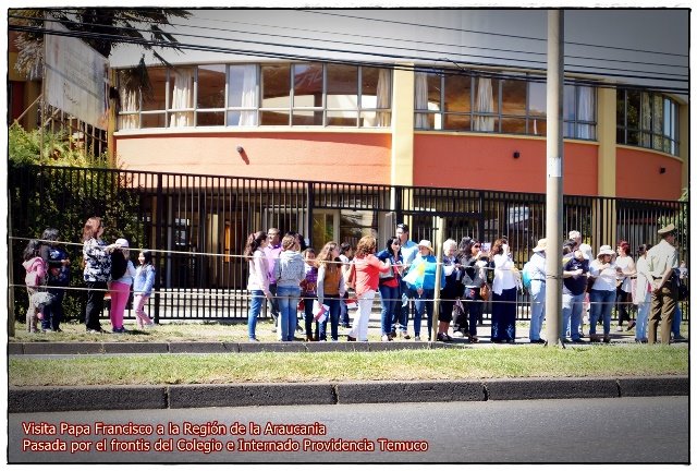 En esta oportunidad se contó con la presencia de las religiosas Madre Teresita y Madre Liliana, ademas de la directora, docentes y personal del colegio, así como también de apoderados, alumnas y familiares, en general todos partes de la comunidad educativa Providencia. Una vez finalizada la transmisión de la Misa, los participantes salieron al frontis del internado por donde el Papa Franciso paso en el Papa móvil, saludando y bendiciendo a las personas que se encontraban para saludarlo en el trayecto.