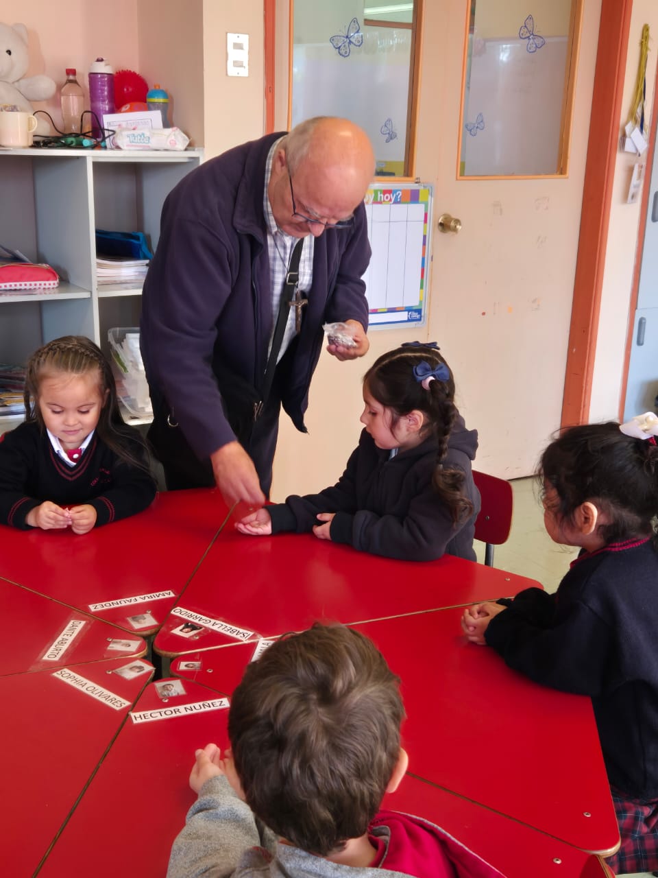El día 27 de marzo, nuestro capellán Padre Giglio Linfati realizó una visita a los diferentes cursos que componen nuestra comunidad educativa. A esta instancia se le denominó “Pausa activa espiritual”. Cuyo objetivo era generar un acercamiento al estilo de Jesús del sacerdote con los estudiantes y docentes.