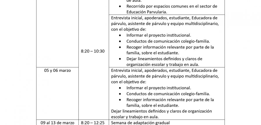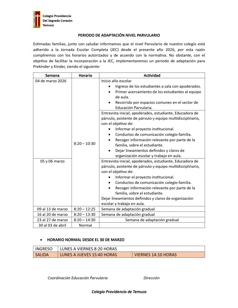 Documento PERIODO DE ADAPTACIÓN NIVEL PARVULARIO 2026