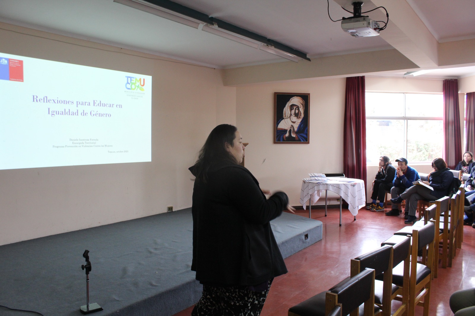 El programa prevención en violencia contra las mujeres (Centro de la mujer Temuco) desarrollo una actividad con los funcionarios de nuestro establecimiento, con el objetivo de reflexionar sobre las violencias y discriminaciones de género que se producen en los espacios educativos, promoviendo estrategias de erradicación y promoción de la igualdad desde las aulas y comunidad educativa.