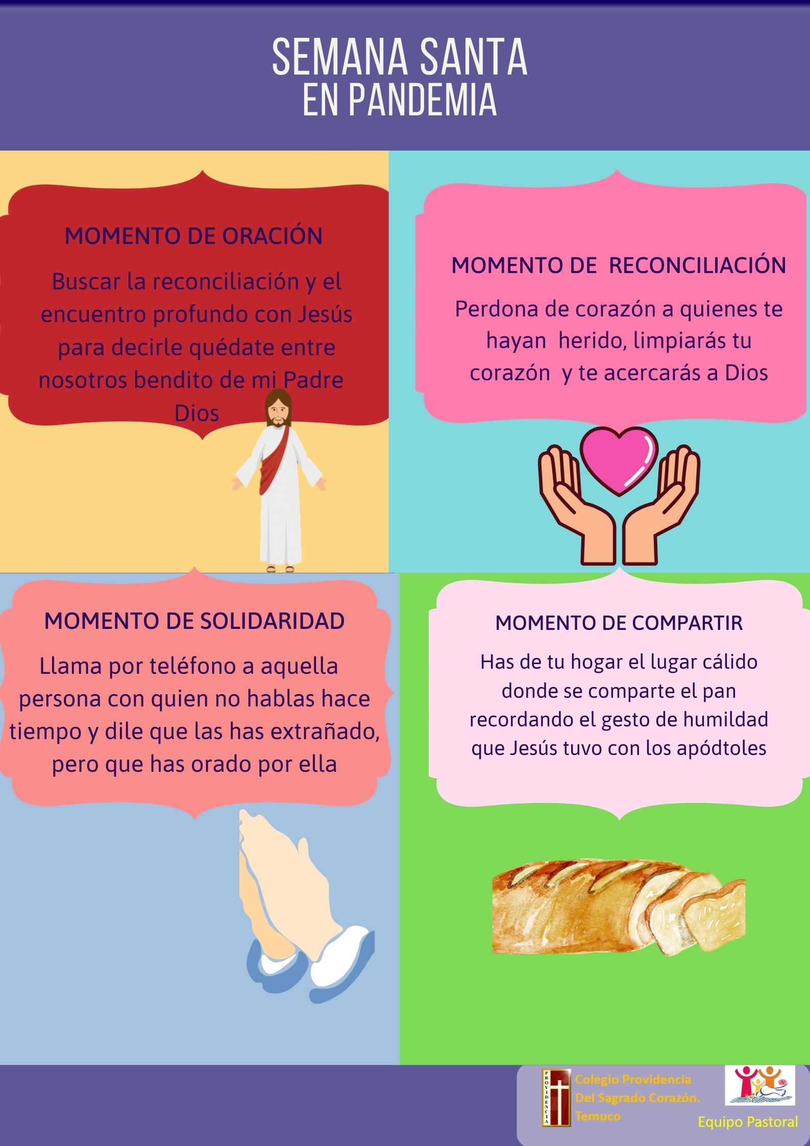 Estamos viviendo Semana, acompañando a Jesús a través del encuentro, del servicio y el apoyo que nos brindamos los unos a los otros como hijos de un mismo Padre. Que este tiempo podamos cultivar la oración y la reflexión.