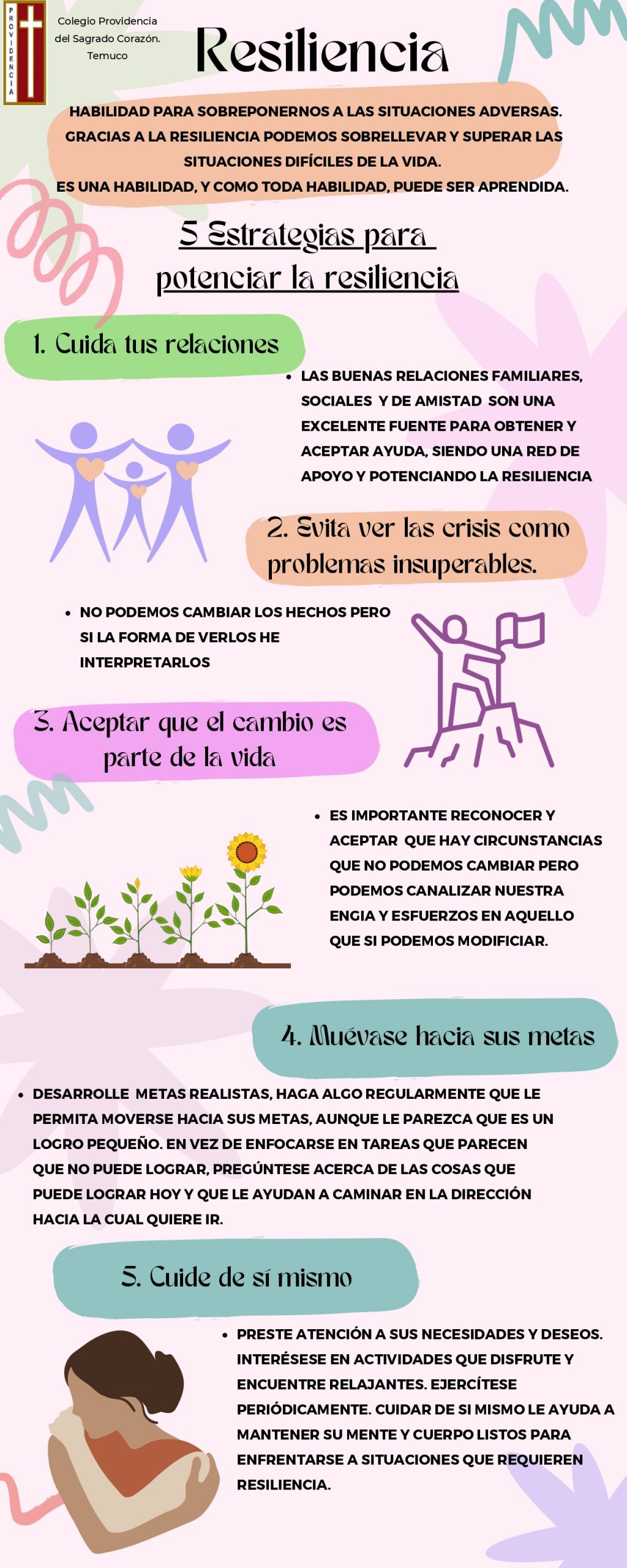 El Colegio Providencia de Temuco tiene como misión ser presencia de Dios Padre Providente y de nuestra Madre Virgen de los Dolores, en la acogida, confianza, respeto, comprensión, humildad y misericordia.