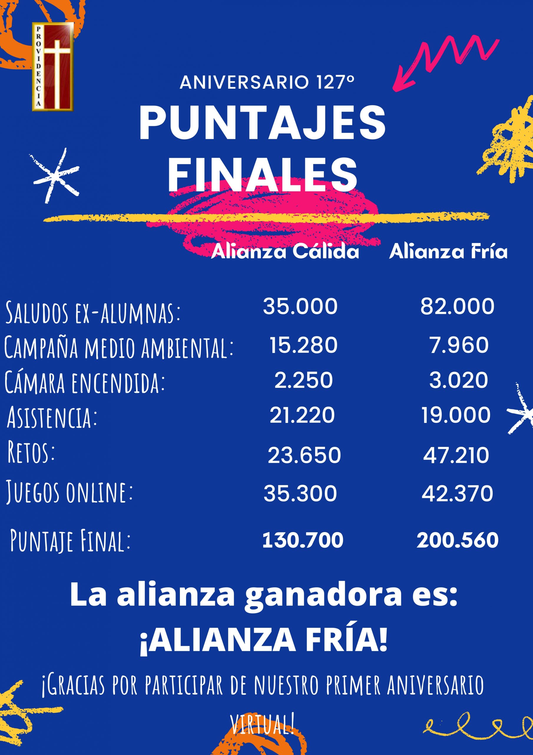 Dejamos aquí los puntajes obtenidos, más detalles de éstos serán entregados a las jefas de cada alianza.