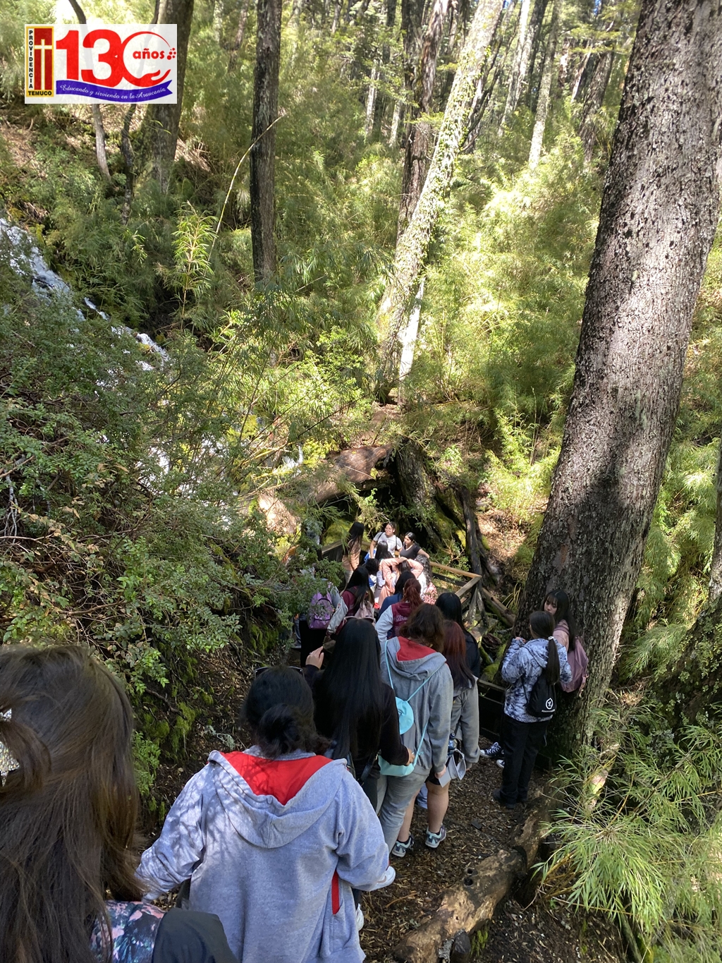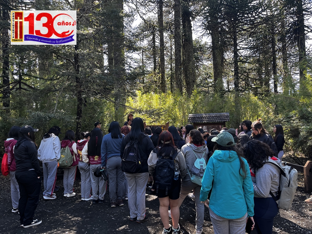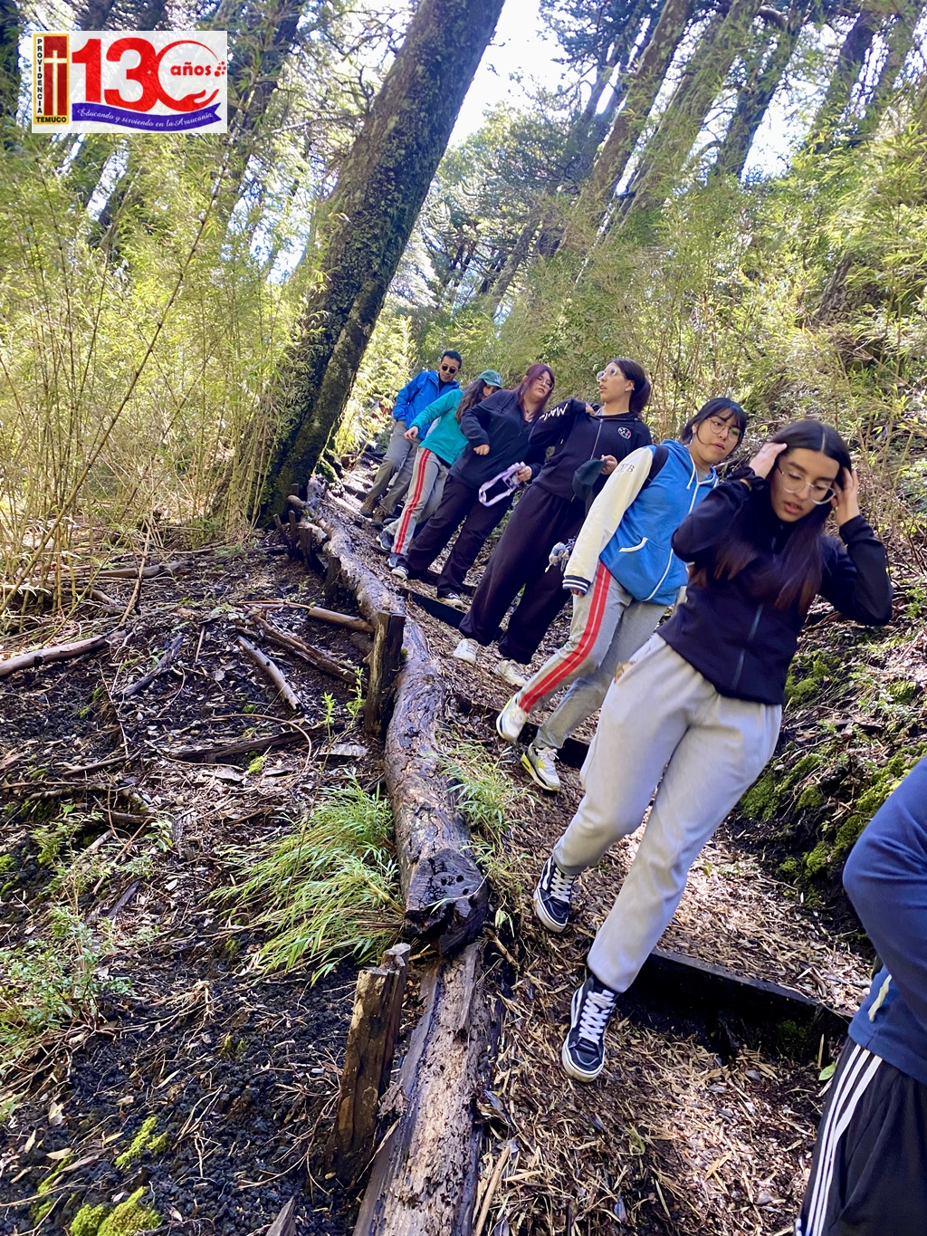 El pasado jueves 17 de octubre, las estudiantes de los electivos Ciencias del ejercicio físico y deportivo, y Biología de los ecosistemas, en compañía de sus profesoras de asignatura Valeria Palma y Camila Mella, respectivamente, realizaron la salida pedagógica al Parque Nacional Conguillio, actividad que tiene por objetivos Conocer y valorar la diversidad de especies endémicas animales y vegetales de Chile, ubicadas en el Parque Nacional Conguillio donde se encuentran protegidas para su conservación, y reflexionar sobre la responsabilidad frente al cuidado de nuestro entorno, y Desarrollar y aplicar habilidades de resistencia aeróbica a través de la disciplina “trekking” en el Parque con el fin de experimentar y entender los principios del entrenamiento continuo en un entorno natural considerando variables físicas y del entorno.