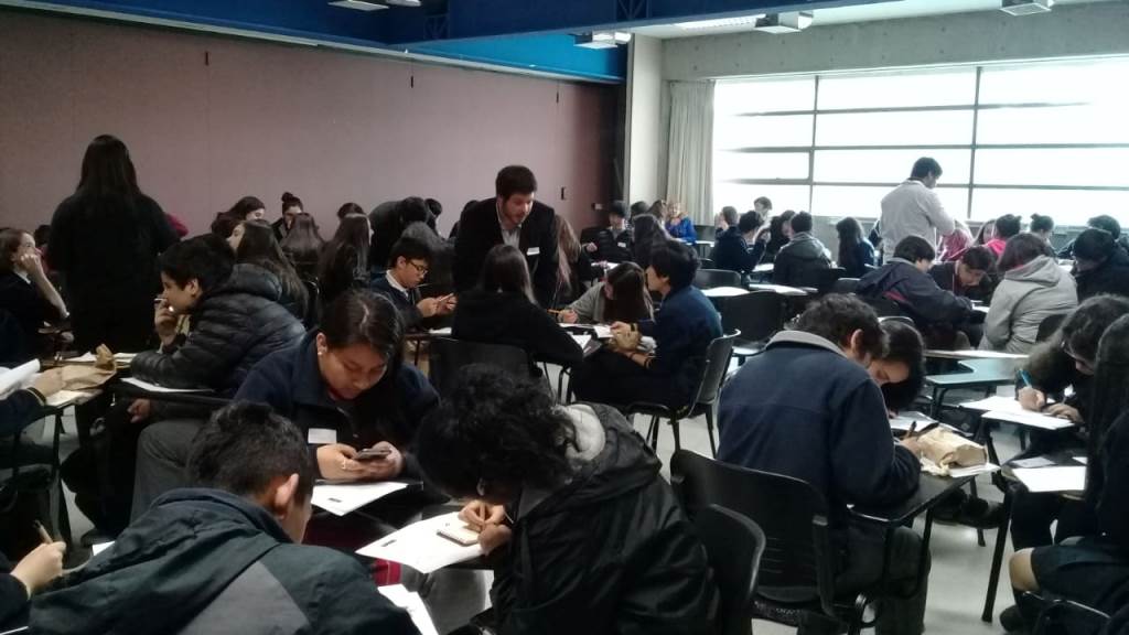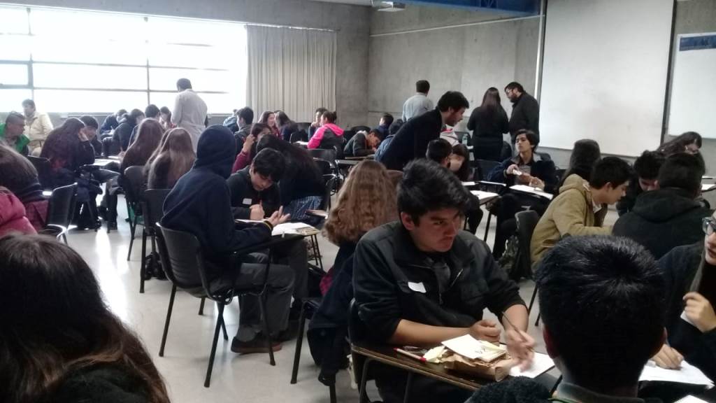 Las estudiantes compartieron con colegios de toda la ciudad de Temuco resolviendo problemas tipo olimpiadas de matemáticas, el objetivo de la actividad es compartir con niños de distintas edades formas distintas de resolver un mismo problema.