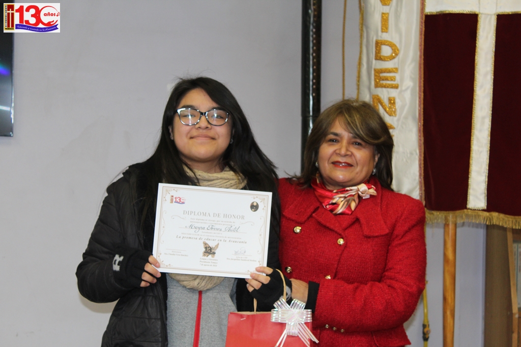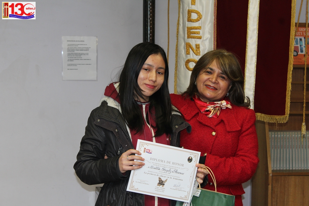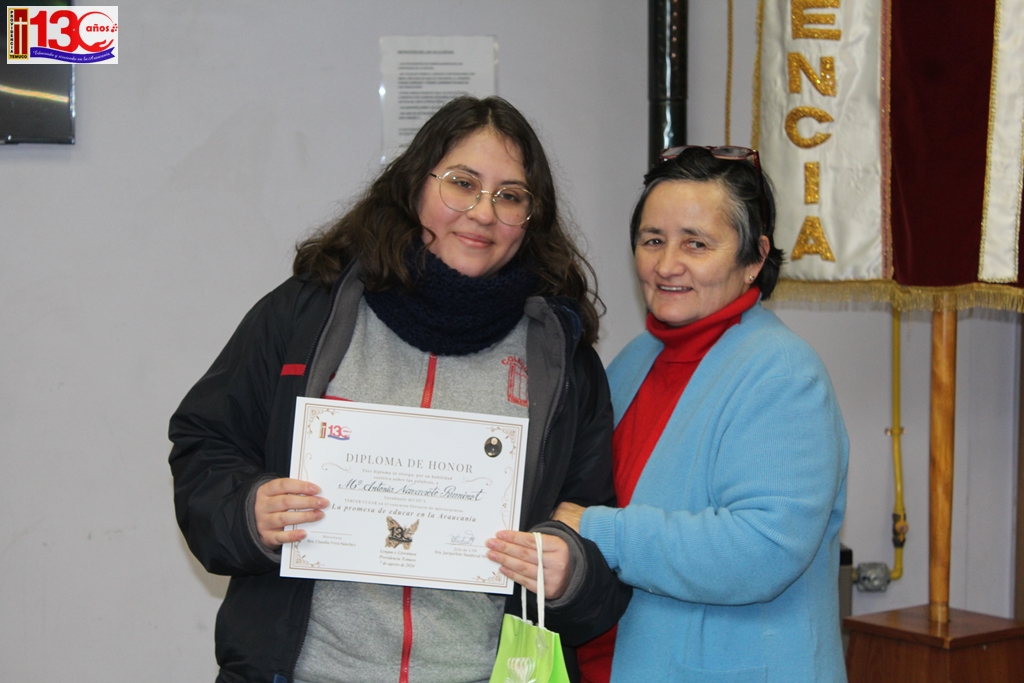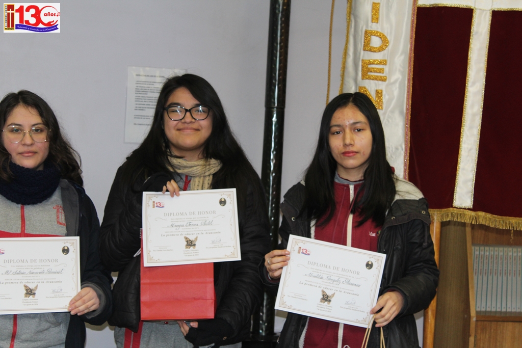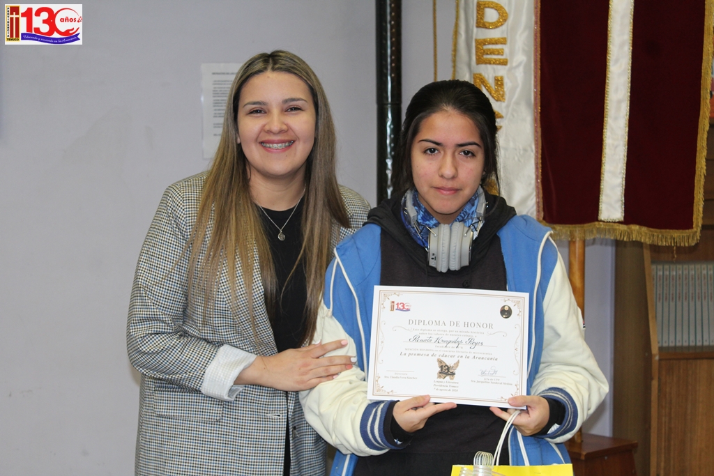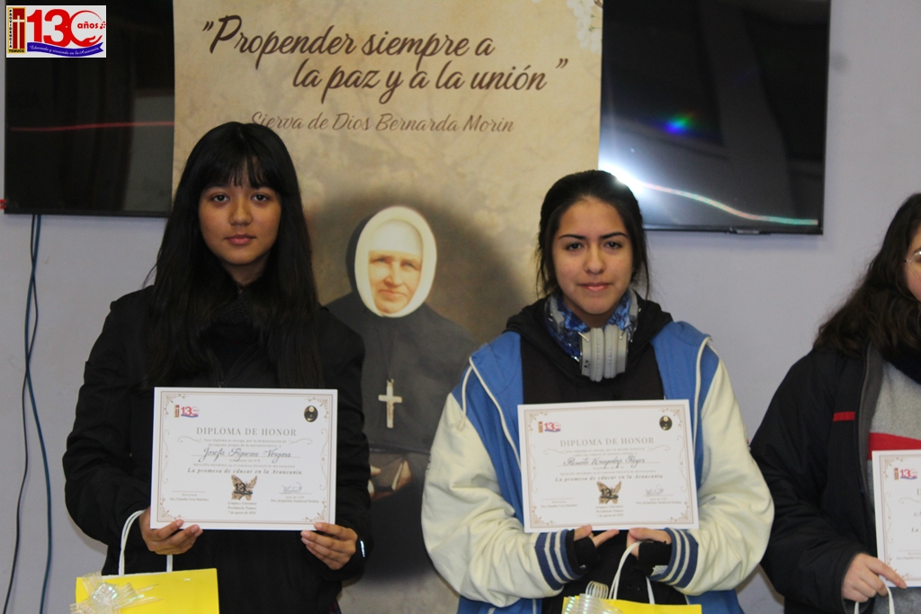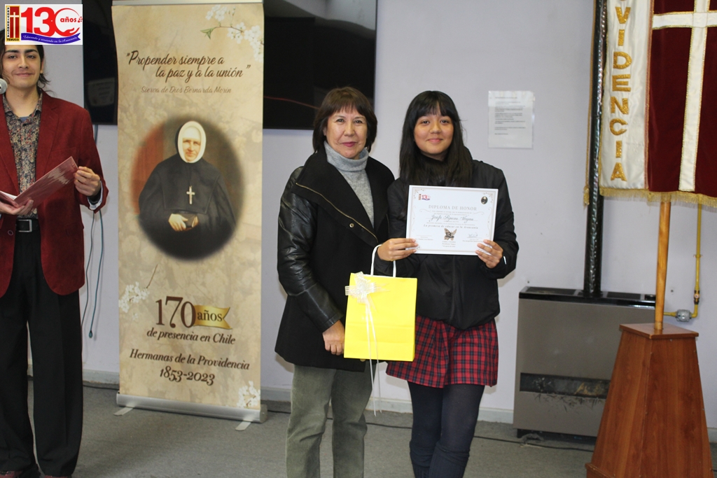 IV medio B y Josefa Figueroa del 8vo año B, fueron reconocidas con menciones honrosas.
