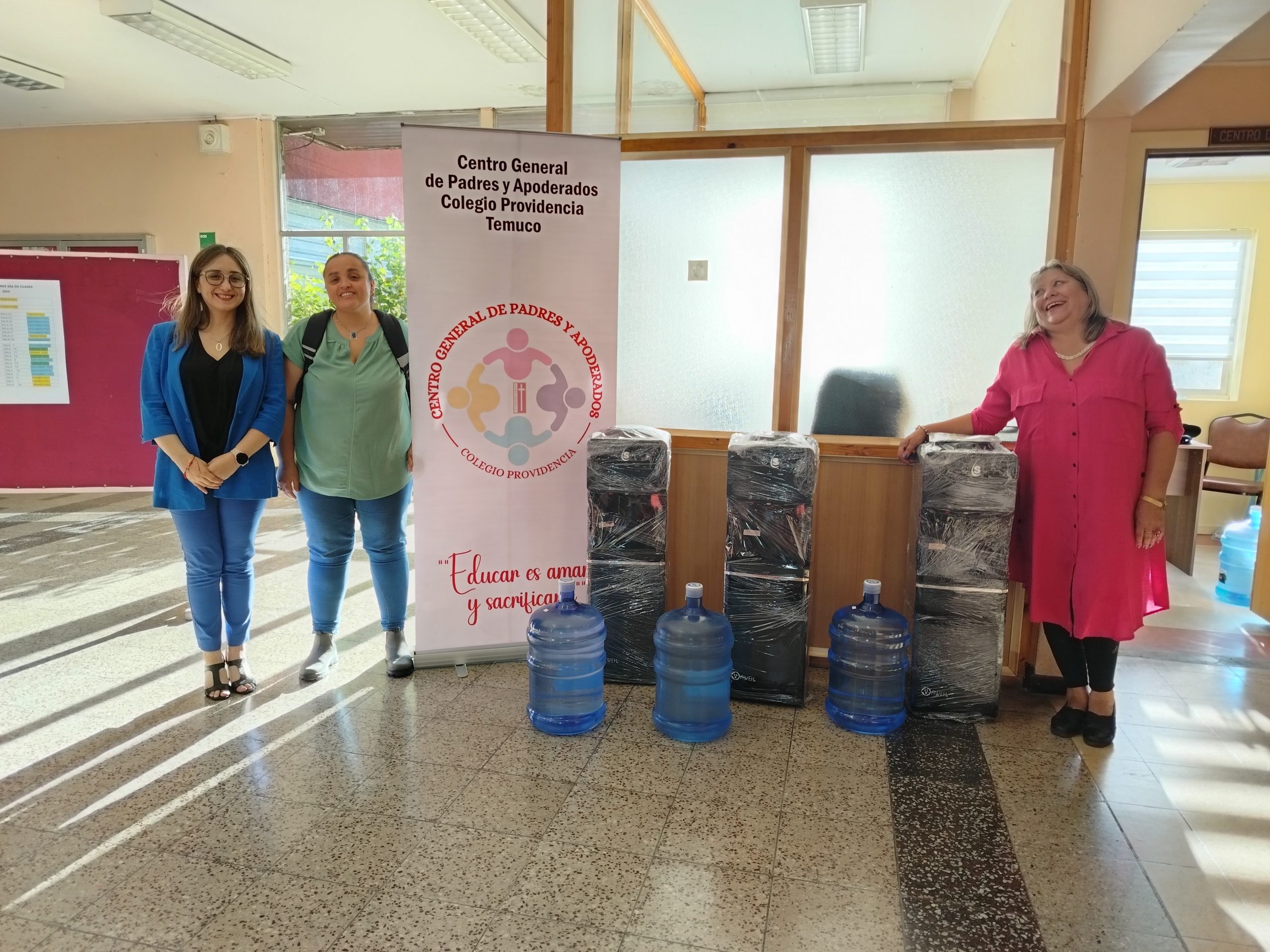El Centro de Padres de nuestro colegio ha realizado un importante aporte para nuestros y nuestras estudiantes, consiste en máquinas dispensador as de agua purificada, que estarán disponibles en para todo el alumnado.