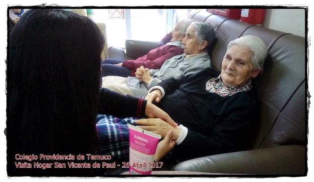 El pasado mes de Abril el grupo de Pastoral del Colegio visitó el hogar San Vicente de Paul y le regalaron a las abuelitas una tarde de autocuidado, esmaltando sus uñas, lubricando sus manos y escuchando sus conversaciones.
